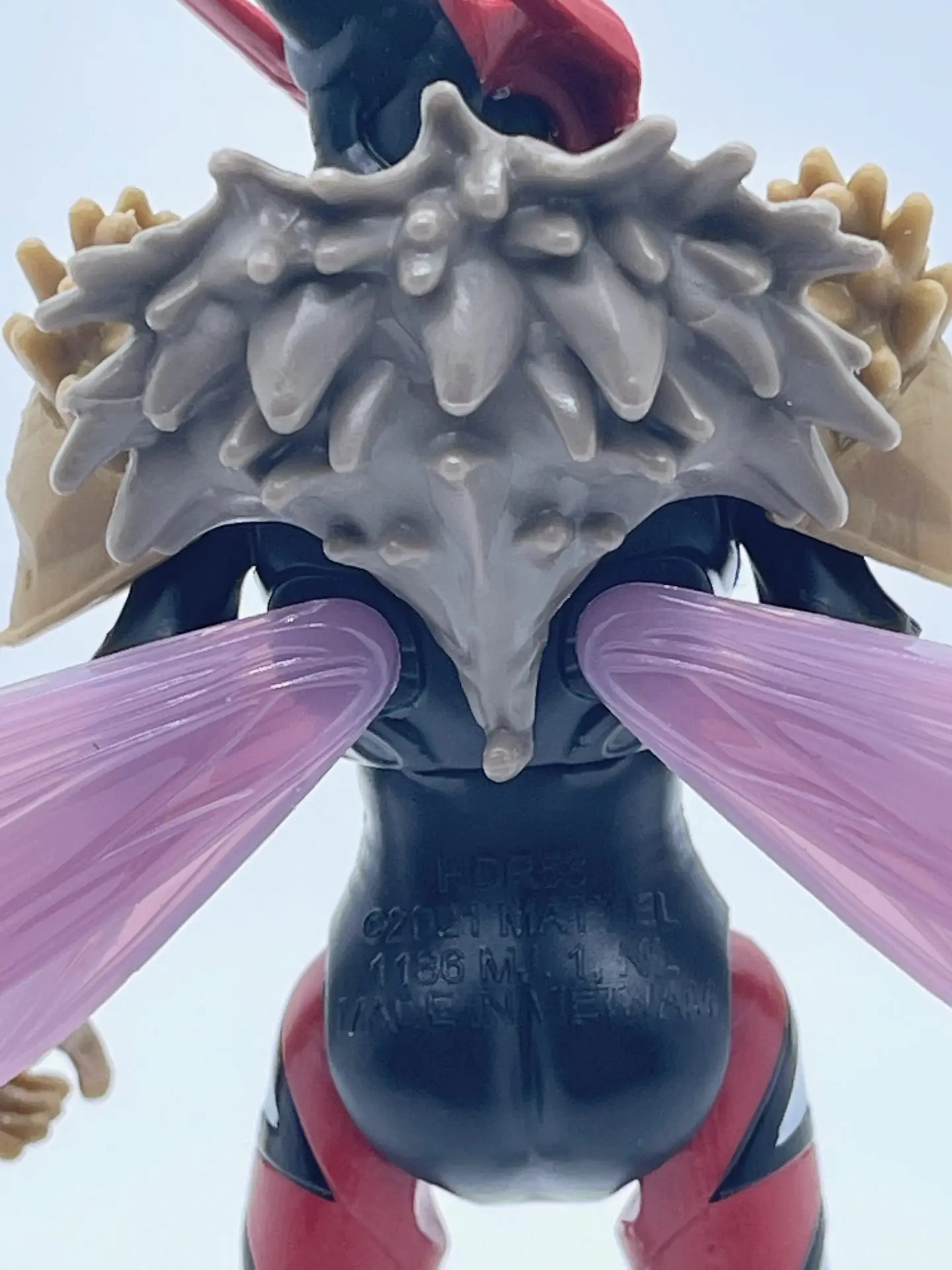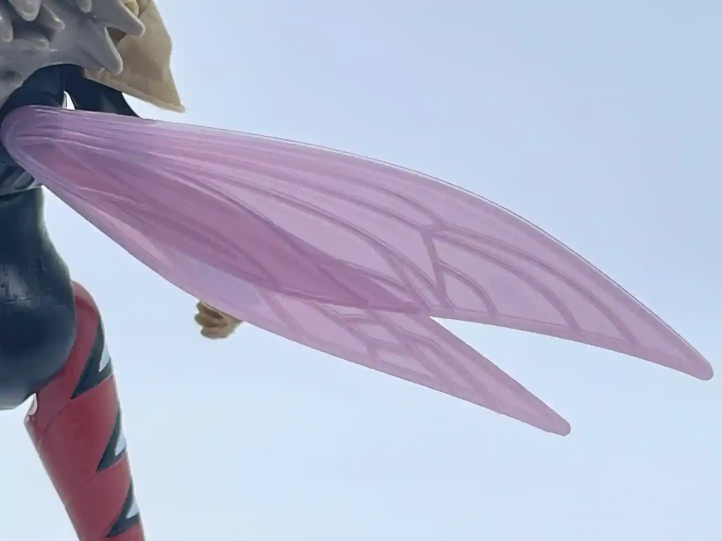 The wings come attached to the figure but we took them off to give you a closer look. You can see the plugs that secure the wings in her back and the design is cool! Each wing is one piece and the veins in the wings gives them a natural look.