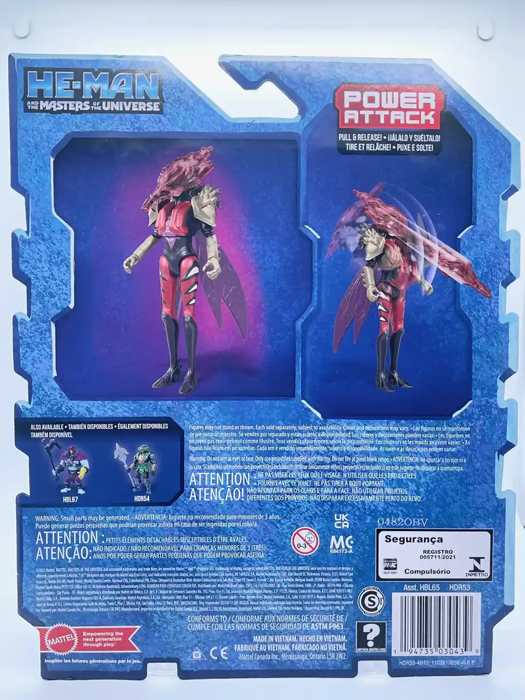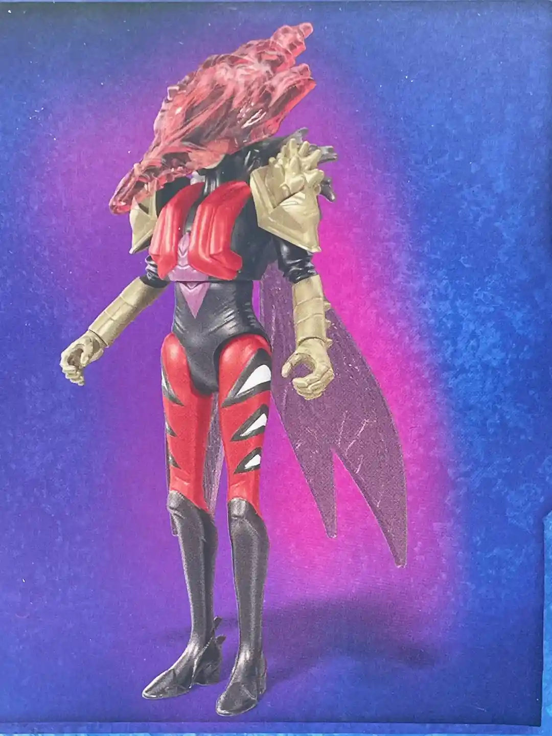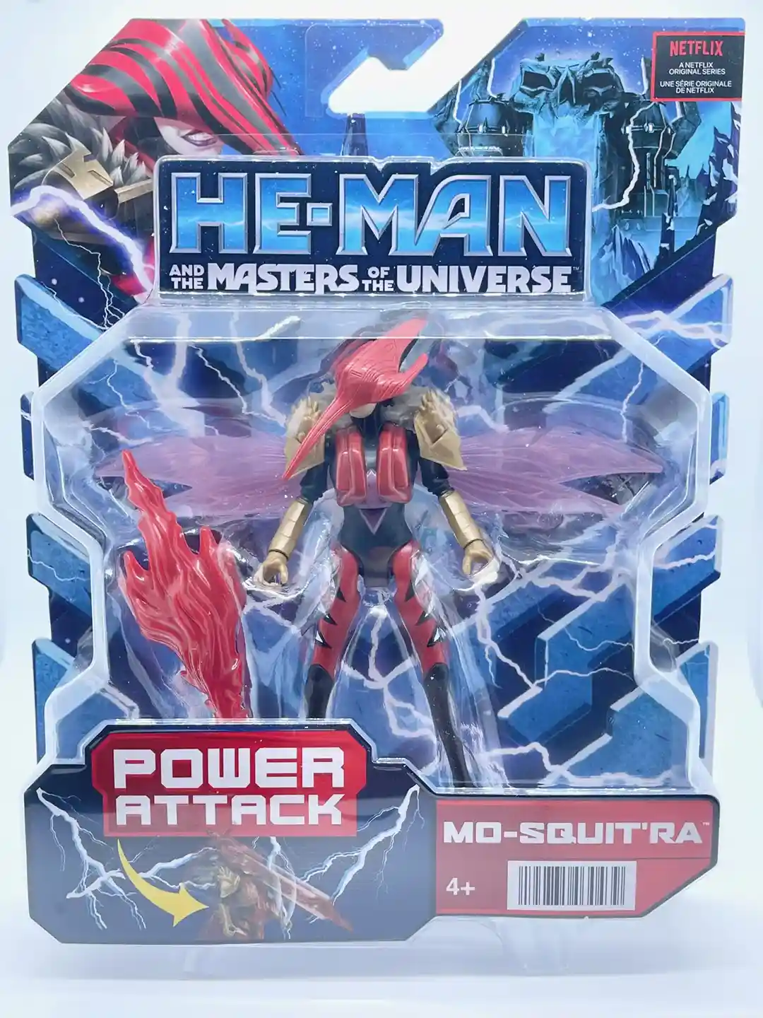 The He-Man and the Masters of the Universe Animated Netflix CGI series never ceases to reimagine the characters and Mo-squita’ra is no exception. Mattel filed a trademark application for this character back in December 2020 and we finally get to see her in the animated series and a figure no less (we also did an article on Mattel character trademark renewals so check that out too!). An obious play on Mosquitor from the Vintage MOTU line, Mo-squita’ra provides a refreshing take on the figure is looks the most bug’like than any figure we have seen in the line. She is a mix of crimson reds, golds, and blacks, and a hint on lavender on the wings. In the animated series, when she absorbs energy using her helmet’s needle, the red accents on her helmet light up and causes the tubes on her chest to glow red. Mo-squita’ra is one of the best CGI animated figures to date!