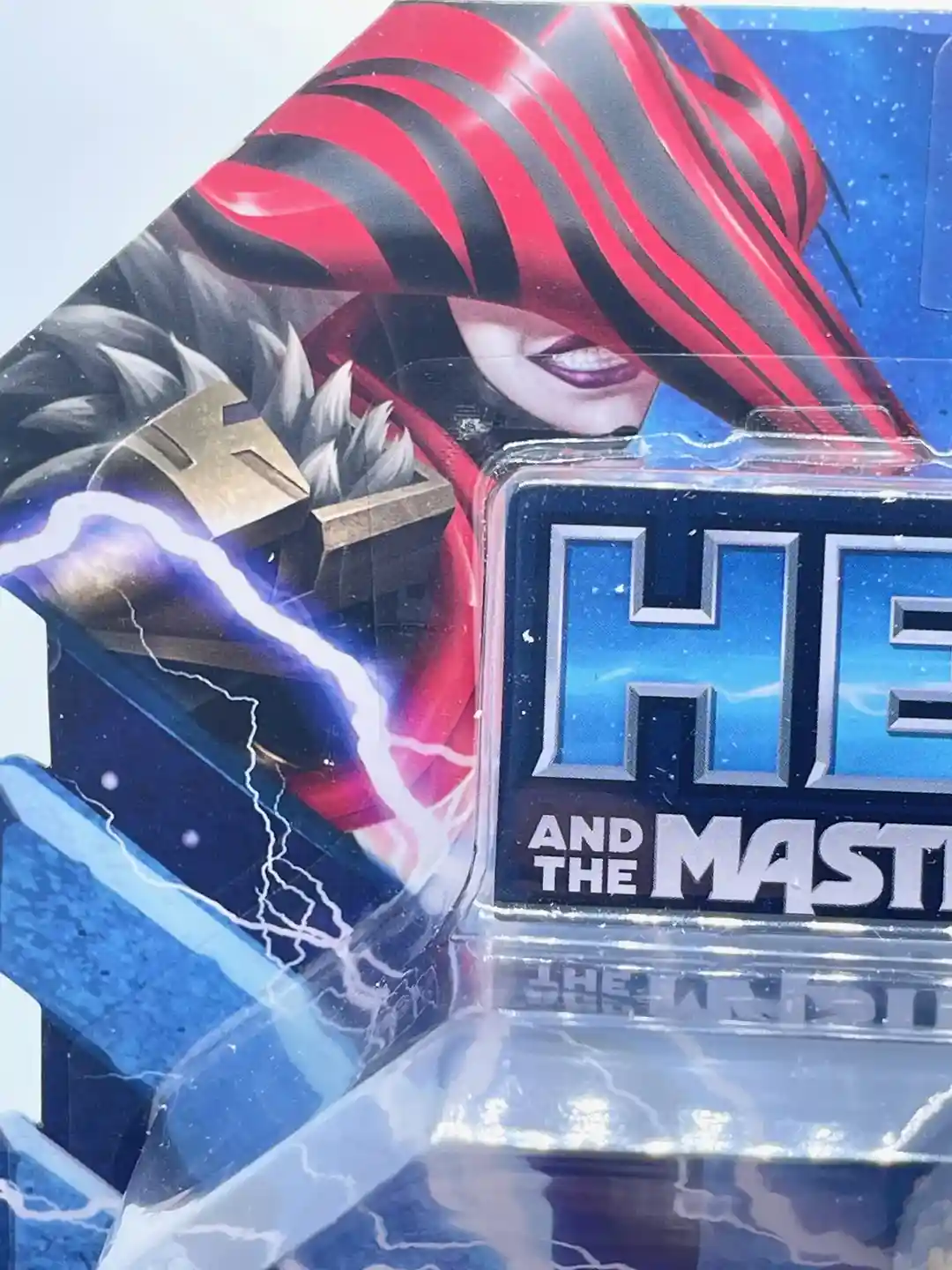 Mo-squita’ra is a core figure so she is packed in the single carded clear bubble, unlike the CGI Beast Man that is packed in an open deluxe display box. There is an illustration of her helmet and she has a Cheshire cat grin on her face and you can see a small piece of her spike pauldron. At the bottom of the package, you can see her Power Attack illustration.