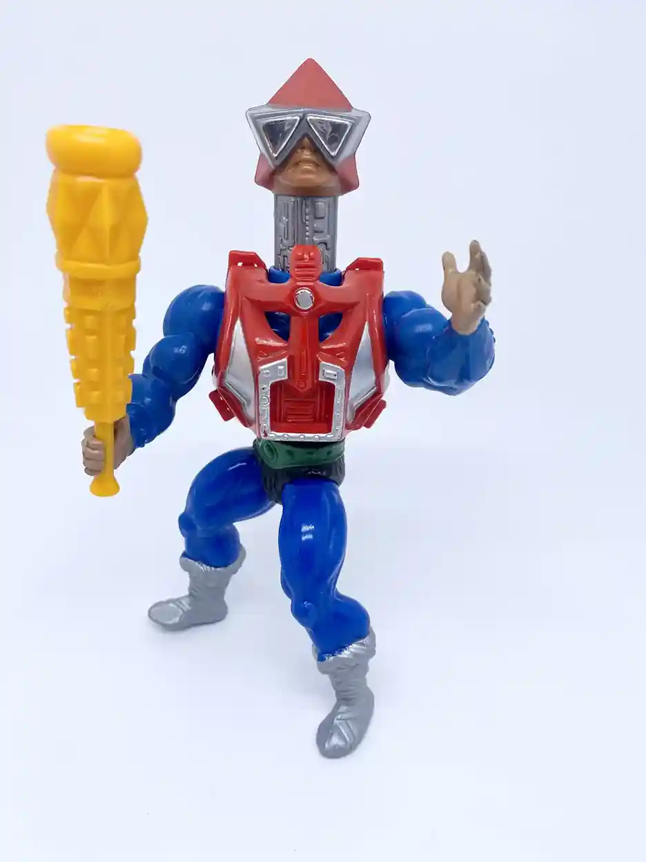 Mekaneck takes a starring role in “The Obelisk” mini comic. He helps He-Man decipher the secret carvings written on the Obelisk. According to our friends at @canaldosrosmineiros, Mekaneck & Road Ripper are coming to Origins in 2023! This has not been confirmed by Mattel and no official images have been released yet, but our friends at @canaldosrosmineiros were right about the She-Ra and Beast Man coming to Masterverse, so there is a really good chance we get this set as well. Released by Mattel in 1984, Mekaneck was a member of the Heroic Warriors, and had the power of long-range viewing. His original working title was Spy Man due to his ability to spy with his periscopic neck. Mekaneck’s periscopic neck would pop up from his torso when twisting his waist. His body was a reuse of the He-Man humanoid body, including blue arms, blue torso and blue legs with silver boots. His torso however had to be modified to allow his periscopic neck to fit inside. He had a new unique body armor that was later also used for Stinkor, and he came with a yellow battle club accessory. So in tieing in with our leak on