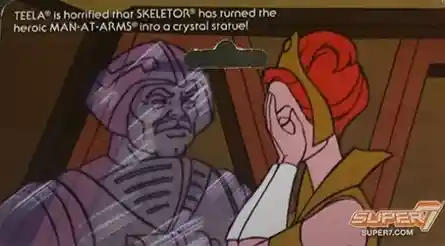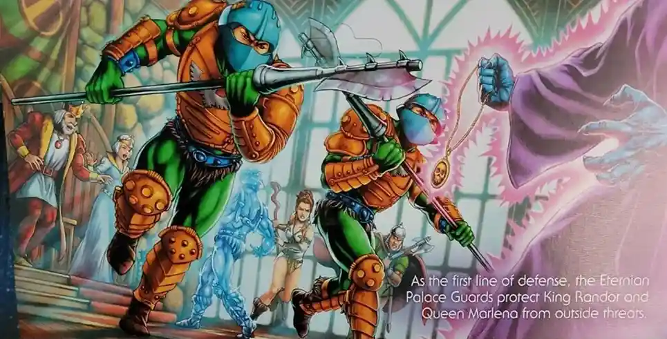 Crystal Man at Arms was featured both in this mini comic and in Filmation cartoon, that adapts this story line into it’s episode. Super7 as part of it’s 5.5″ Vintage style line wave 3 in 2019 released a Crystal Man at Arms action figure as well. They did a really good job on that one as it looks and feels like something that would have been released in the 1980’s but with that Filmation style to it, and the Crystal translucent effect is spectacular. The Card Back even features a scene straight out of He Man and the Masters of the Universe Filmation cartoon where Teela is so upset at the sight of her father in a crystalized form. Let’s hope we get an Origins version of the is Crystal Man At Arms! Mattel has already created an Art of Engineering Skeletor, so they are capable of making a beautiful Crystalized figure already! You will also see Crystal Man at Arms Illustrated on the back of the Royal Eternian Guard Card art, which we will touch on more later.