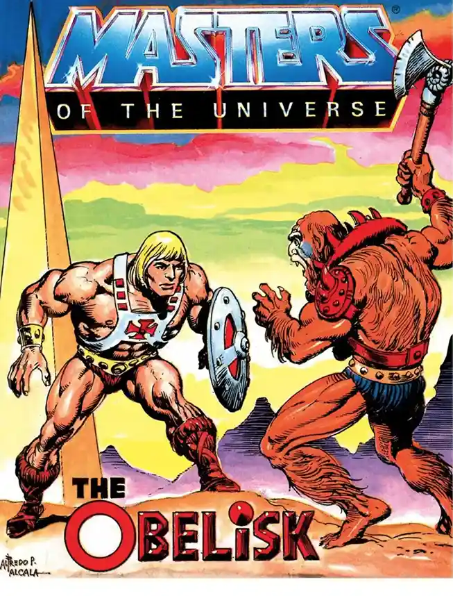 Post on Axel Gimenez’s Instagram page is an image of him working at his drafting table on new Masters of the Universe card back artwork, and if you look closely, you will see several vintage Masters of the Universe Mini-Comics sitting on the table nearby. With the help of one of our viewers, Allison, we were able to decern which mini comics Axel was using as his inspiration. Seen sitting on the table is “The Obelisk”, “The Dragon’s Gift”, “King of the Snake Men” and ‘Masks of Power”. Coincidentally, a lot of the characters featured in these issues are figures that have been in recent rumor leaks lately! So it seems very fitting that Axel would be working on card art for them! Take for example, “King of the Snake Men”, that issue features King Hiss, Kobra Khan, Tung Lashor and Rattlor, which are all figures we featured in our 2 leak articles Snake Men coming to MOTU Origins in 2023 and More Snake Men coming to Origins in 2023, which we published in March. So let’s take a look at each of these min-comic issues and see what the use of these for art inspiration may tell us about potential upcoming characters!