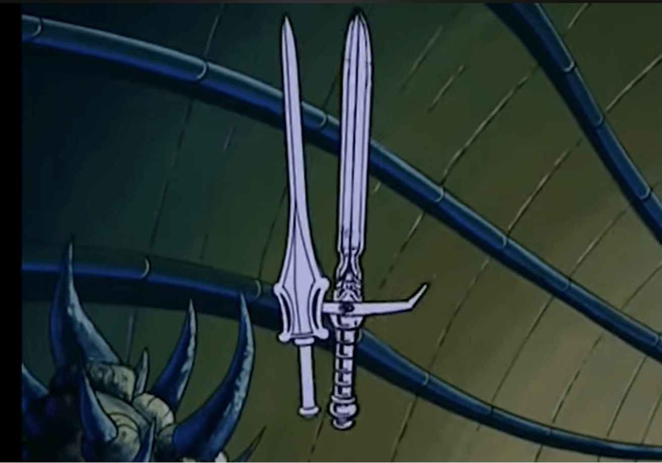 The Sword of the Ancients is retrieved by He-Man and joined with his own Sword of Power. With the Sword of the Ancients forever beyond their reach, Demos and Tyrella vanish, and Aran and Oona return, having learnt the cost of their evil employment.
