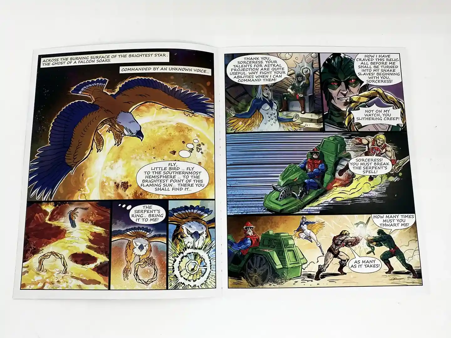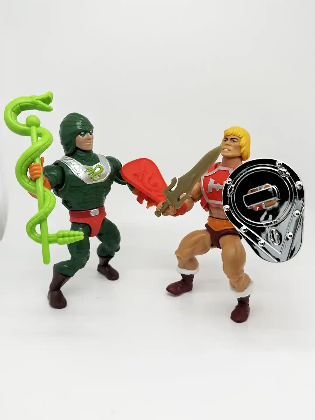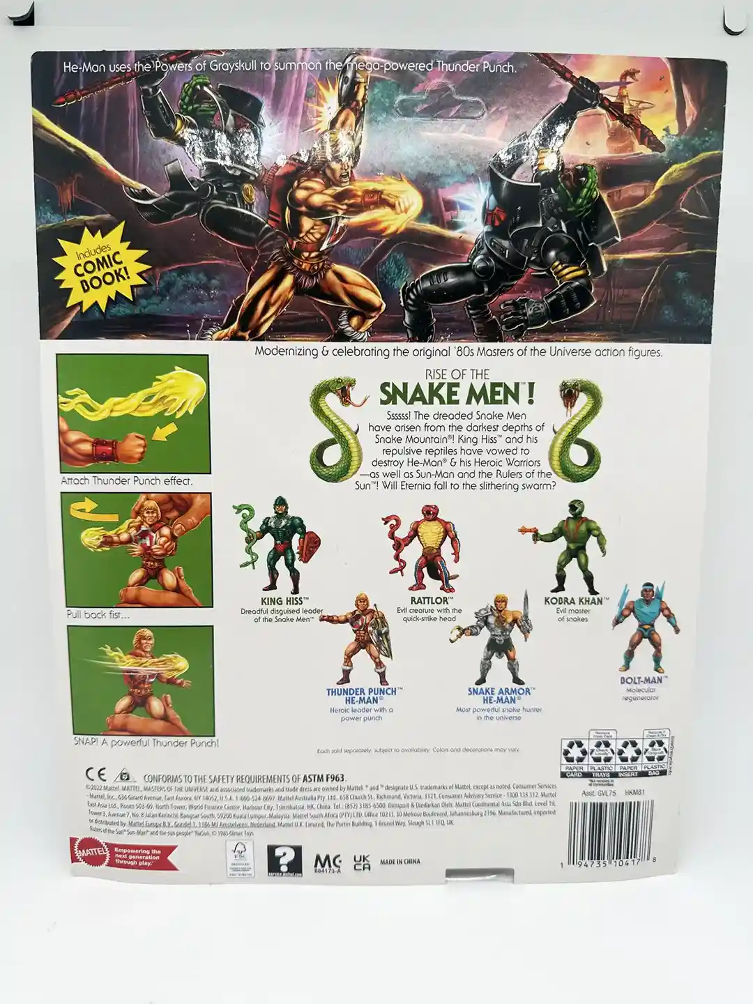 These figures include an all new mini comic ” Heart of Snake”. We photographed the entire thing for you, so if you want to read it, please see below. Thunder Punch He-Man and King Hiss square off with help from the Sorceress and Mekaneck!