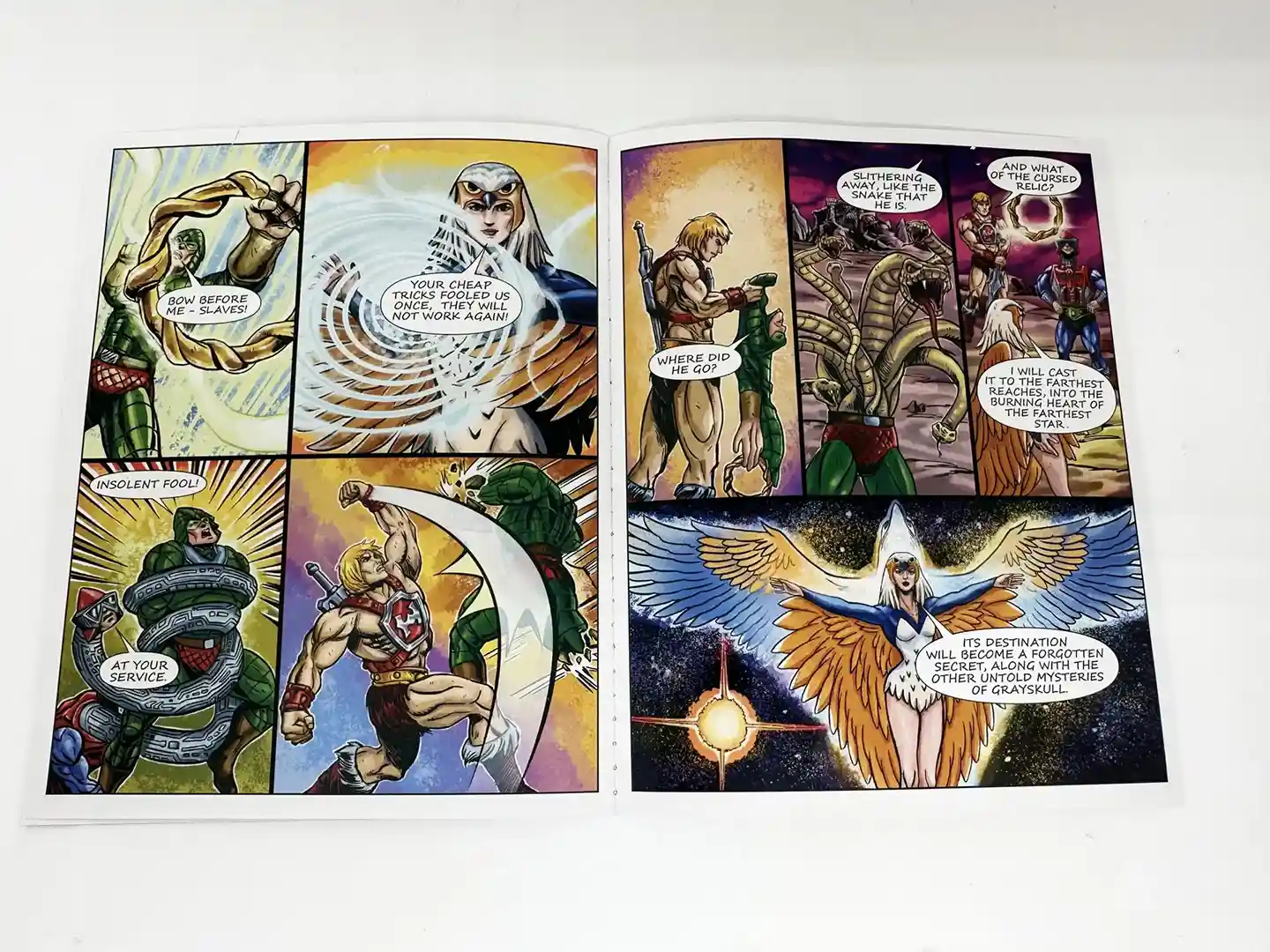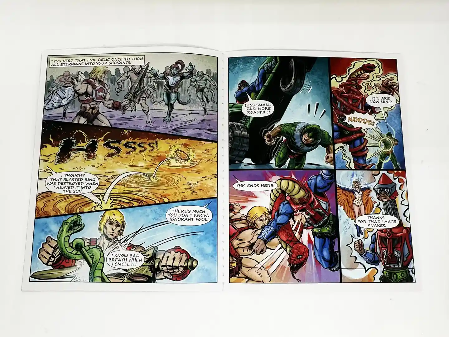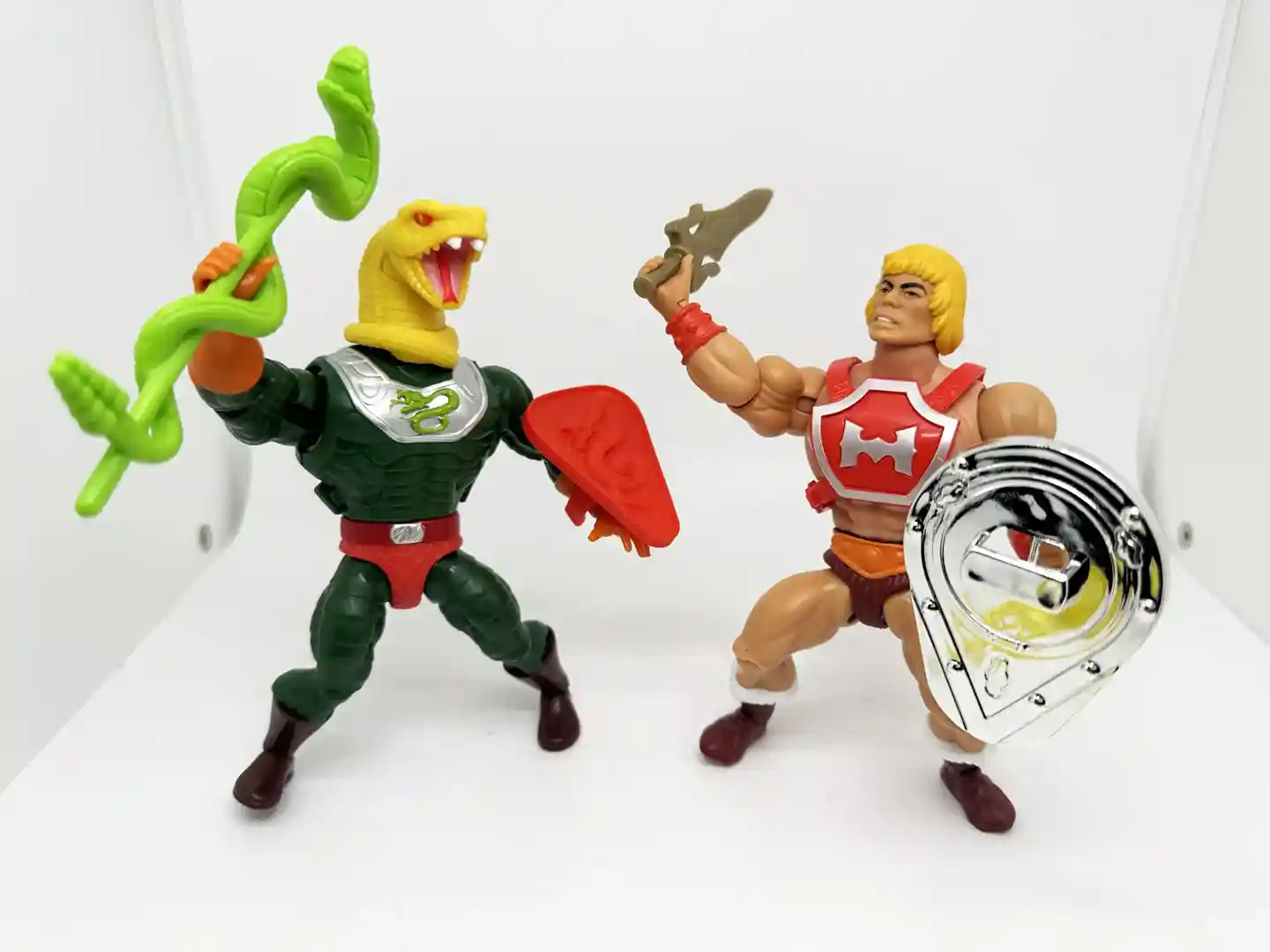 These figures include an all new mini comic ” Heart of Snake”. We photographed the entire thing for you, so if you want to read it, please see below. Thunder Punch He-Man and King Hiss square off with help from the Sorceress and Mekaneck!