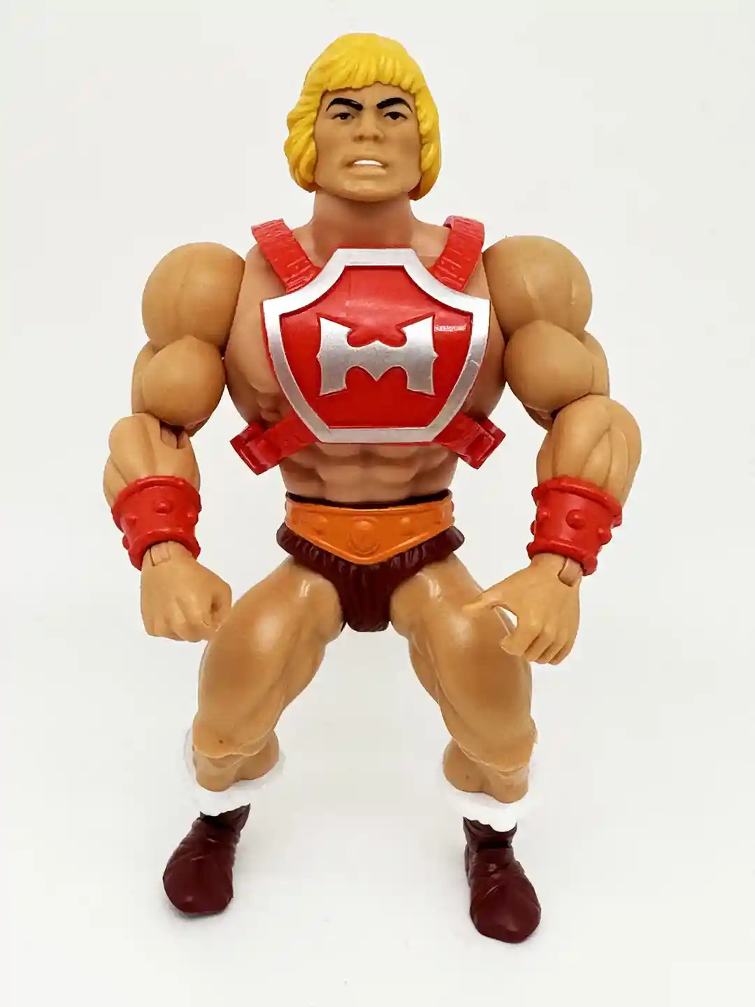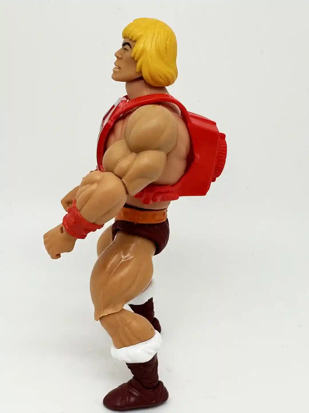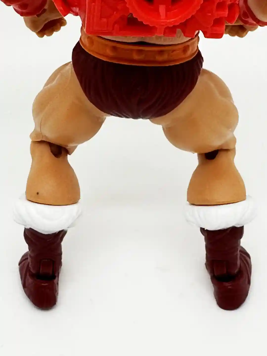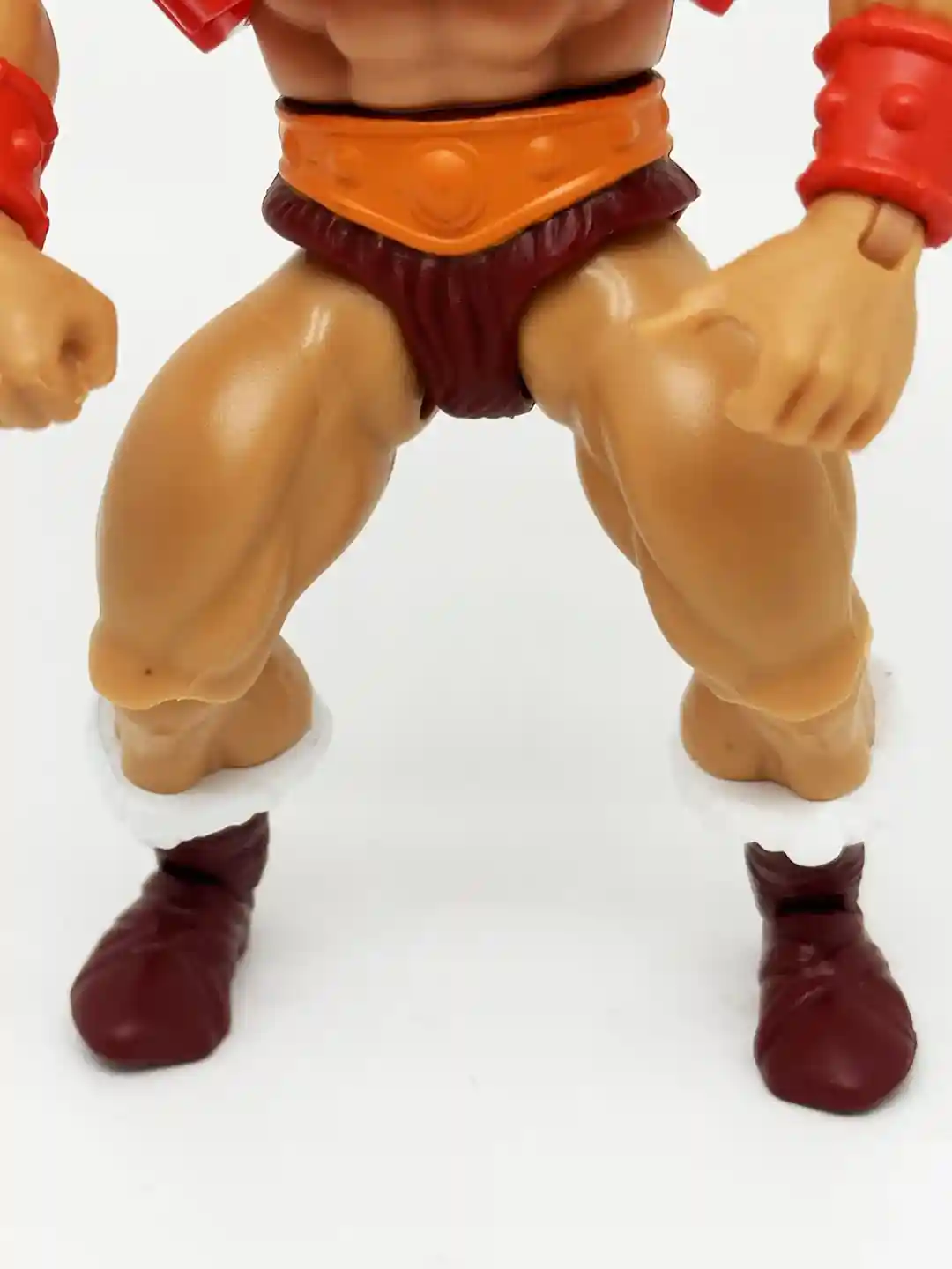 Thunder Punch He-Man’s waist and legs are again the same standard design as the other He-Man figures, similar with an orange belt, burgundy shorts and burgundy boots with white furry trim. I think this looks fantastic and again a direct harkening back to the vintage toy!