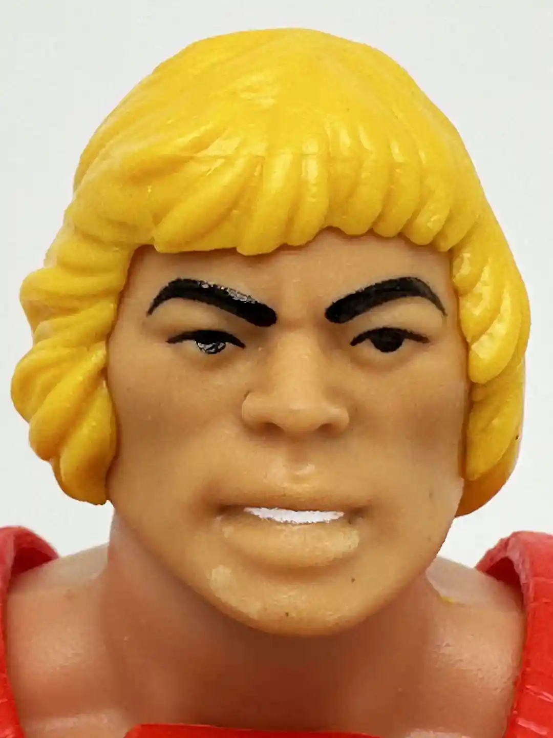 Thunder Punch He-Man comes with his vintage inspired head sculpt, which has become the norm in all recent He-Man releases. Just like the Flying Fist He-Man figure, the neck peg is frozen in place as only one half of the body mold was cut out to make room for it. This might be a consequence of the waist twist feature, as both figures had that or they just reused parts of the Fly Fist mold, in either case it is a little annoying that you can only swivel the head and it doesn’t move up and down.