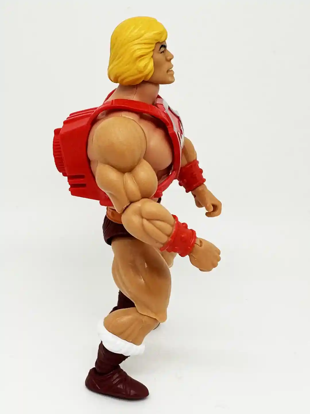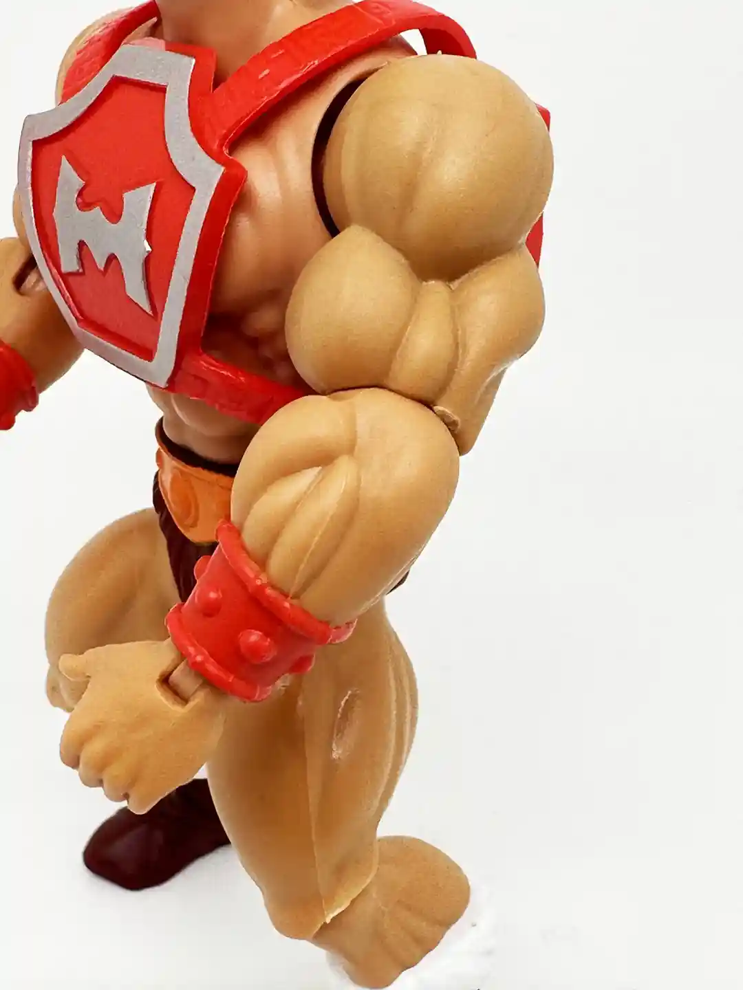 The figure comes with the Standard He-Man arms, but this time with red colored bracers. The arms are not removeable, similar to Battle Armor He-Man and Flying Fist He-Man. This is to allow for the waist twist Thunder Punch feature. By twisting his waist, you activate his Thunder Punch!