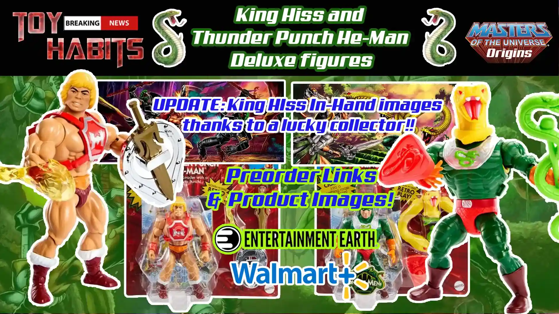 Mattel is hitting all all cylinders today with MOTU drops!!! And not only did we get Wave 11 preorders, but Entertainment Earth dropped him on their website for preorder snuck up on us with these two Deluxe Figure drops! We are finally getting MOTU Origins King Hiss and Thunder Punch He-Man Deluxe figures! The Deluxe card backs looks amazing! Continuing with the Rise of the Snake Men theme, both Thunder Punch He-Man and King Hiss come packaged on Snake Men themed card backs complete with the Snake over the MOTU logo, Snake Men logo sticker and unique front and rear card art!