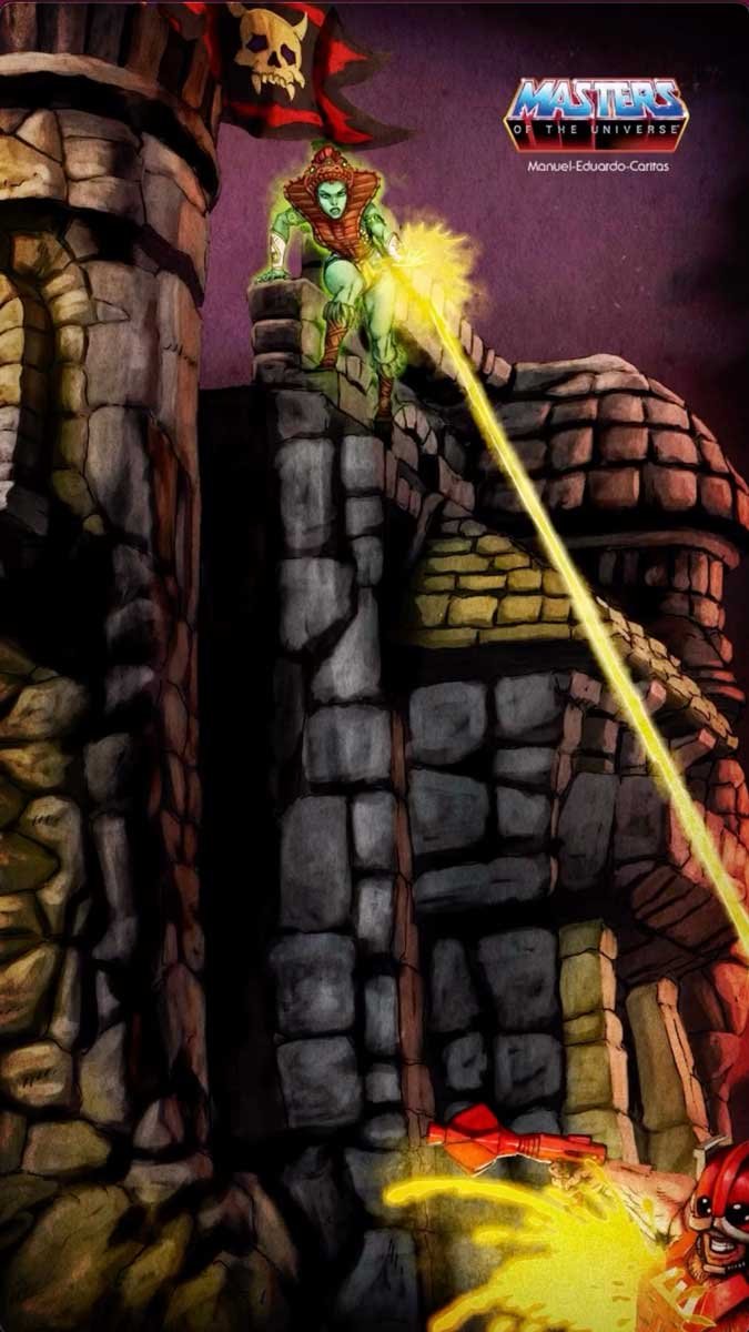 Today, Roy Juarez posted the Hi Res Art Reveal for the Mark Taylor Vintage Castle Grayskull Playset Box and it looks incredible! There are a few easter eggs we want to take a closer look at as well. This box art takes ques from original vintage art work