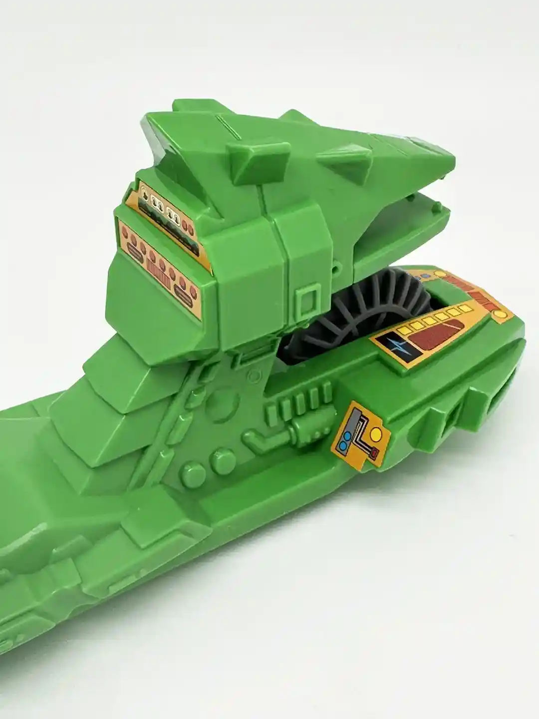The ground Ripper includes an alternate “mantel” as Mattle calls it, but I call it a head, LOL for the front of the vehicle. Similar to the two “head” pieces that came with the Sky Sled, the Ground Ripper includes another sleek looking designed mantel piece to change out the look of the vehicle. Where the vintage mantel looks like a dragon’s head, this alternate head resembles a cat.