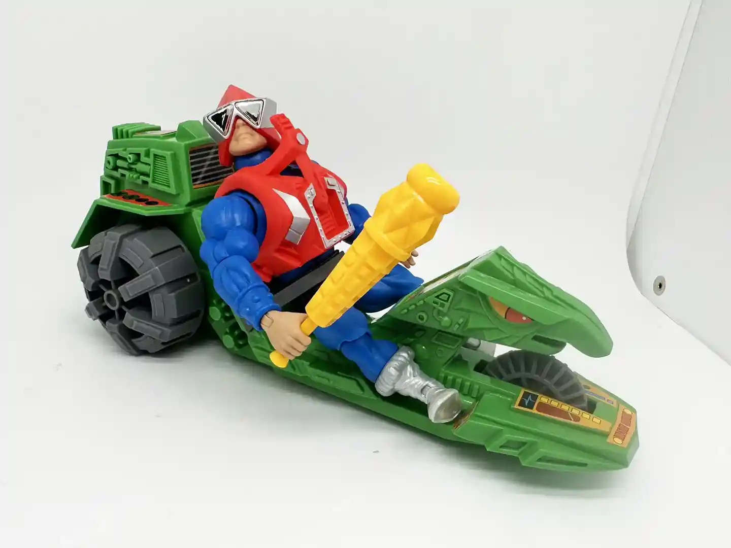 The Ground Ripper looks fantastic as a perfect tribute to the vintage serpentine looking vehicle! Again, Mattel has been true to the vintage vehicle’s history in recreating the green speed machine! With the Dragon inspired head, grey front wheel and large back wheel, plus all those great stickers!
