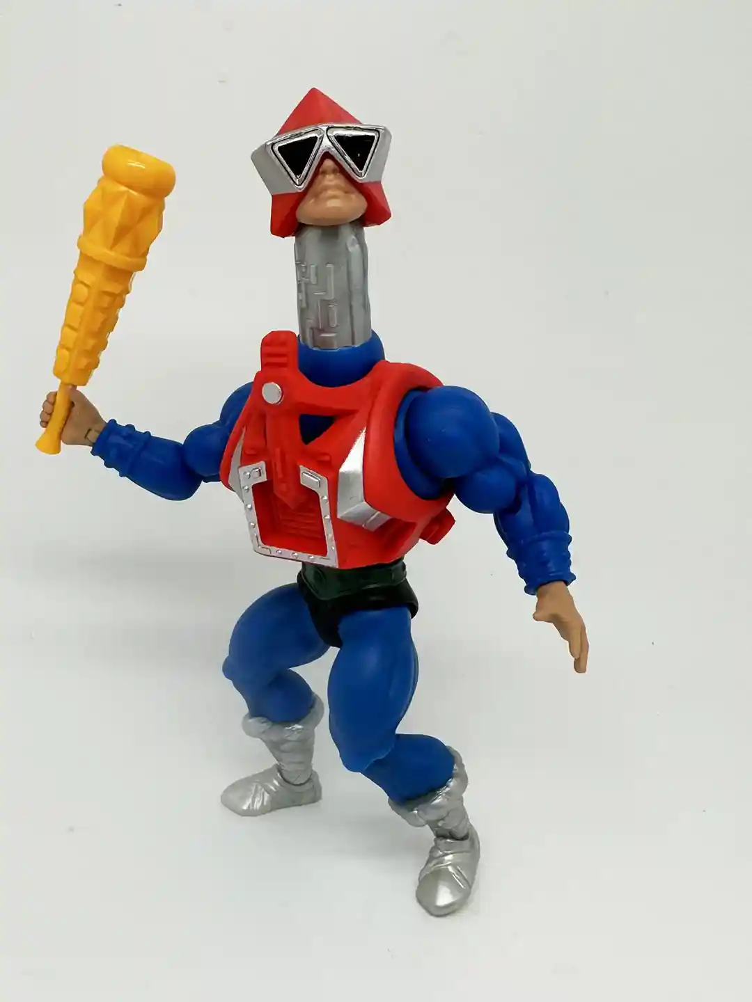 A simple re-used of Stinkor’s battle armor, Mekaneck uses the same armor but in a soft red plastic. There are some silver paint apps on the front, framing the bottom rectangular half and also at the round sculpted piece near the neck area.