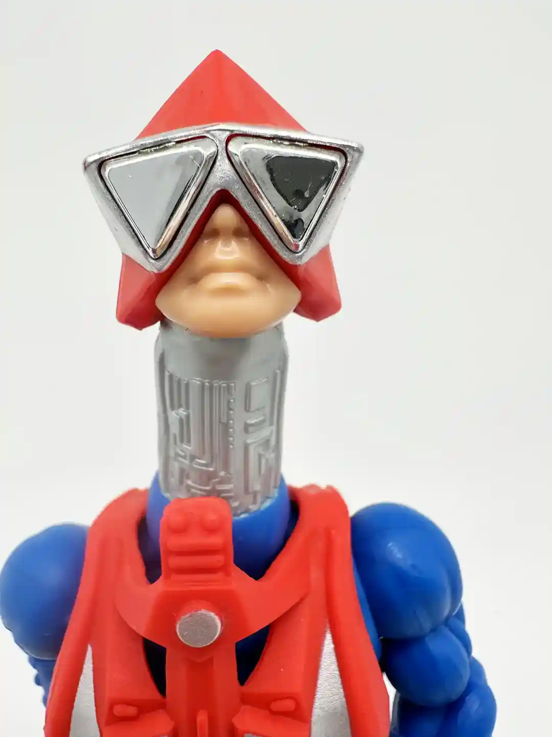 Mekaneck’s head is a perfect interpretation of the vintage figure! With those shinny vac metal triangular googles, red helmet and smirk on his face, this MOTU Origins version of Mekaneck looks great! As you can see the silver paint app for his google design wraps around the rear of his head.