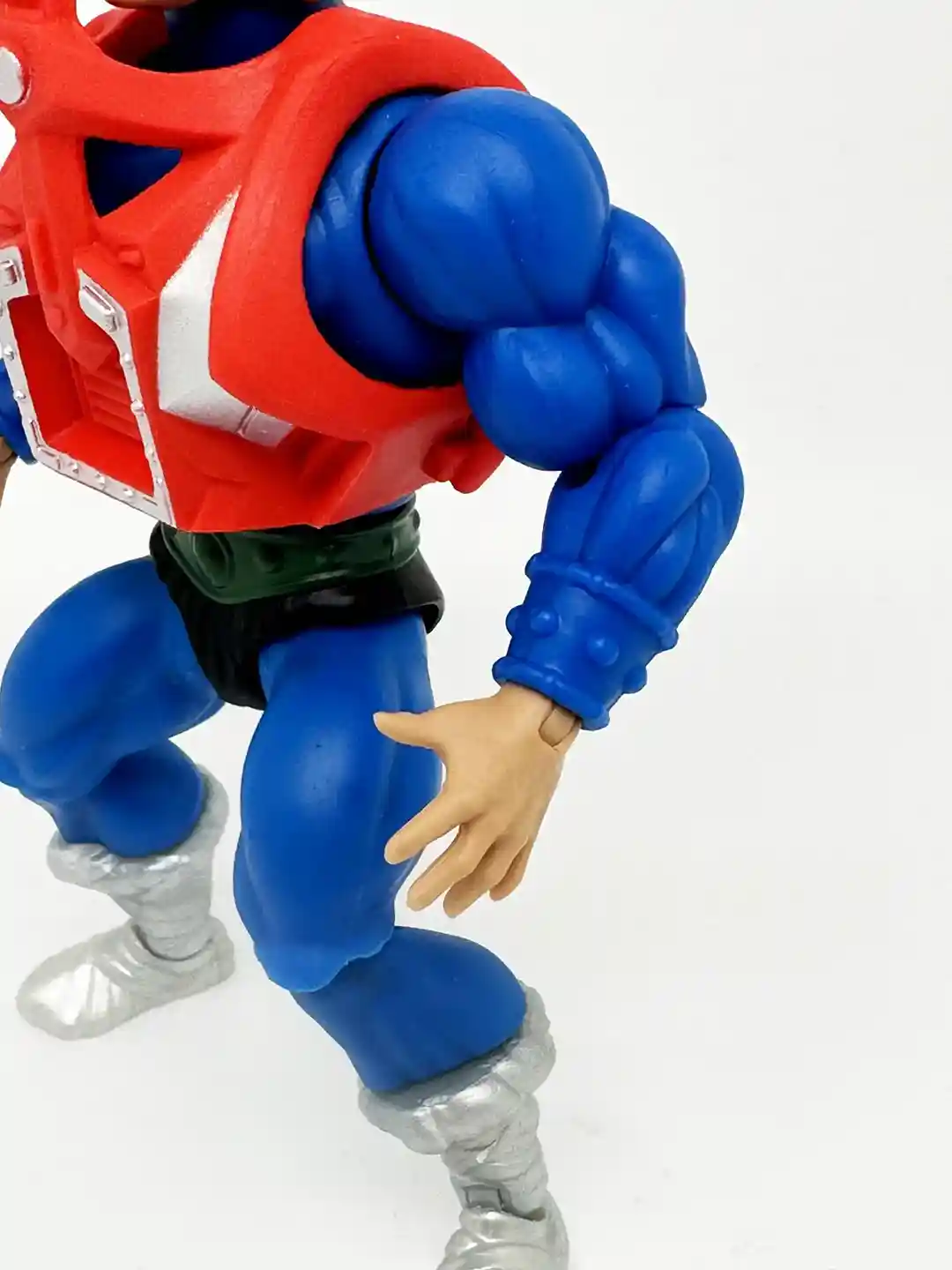 Mekaneck’s arms are a simple reuse of the standard MOTU Origins buck like that of He-Man with the arm bracers. His arms are a blue plastic color with flesh colored hands. He comes with one right gripping hand and one left open plam hand.