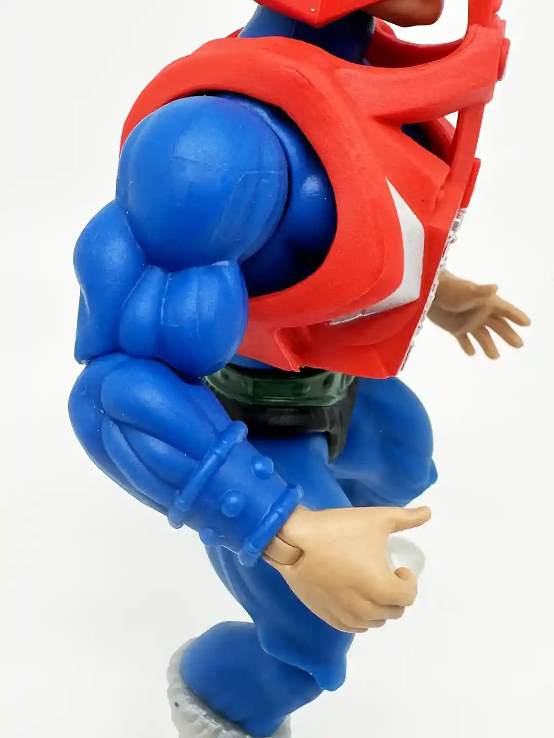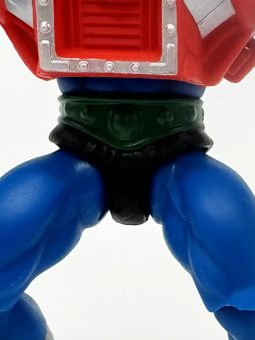 Mekaneck’s waist is also a simple reuse of the standard MOTU Origins buck like that of He-Man’s waist. He is wearing a blue belt with a black loin cloth..