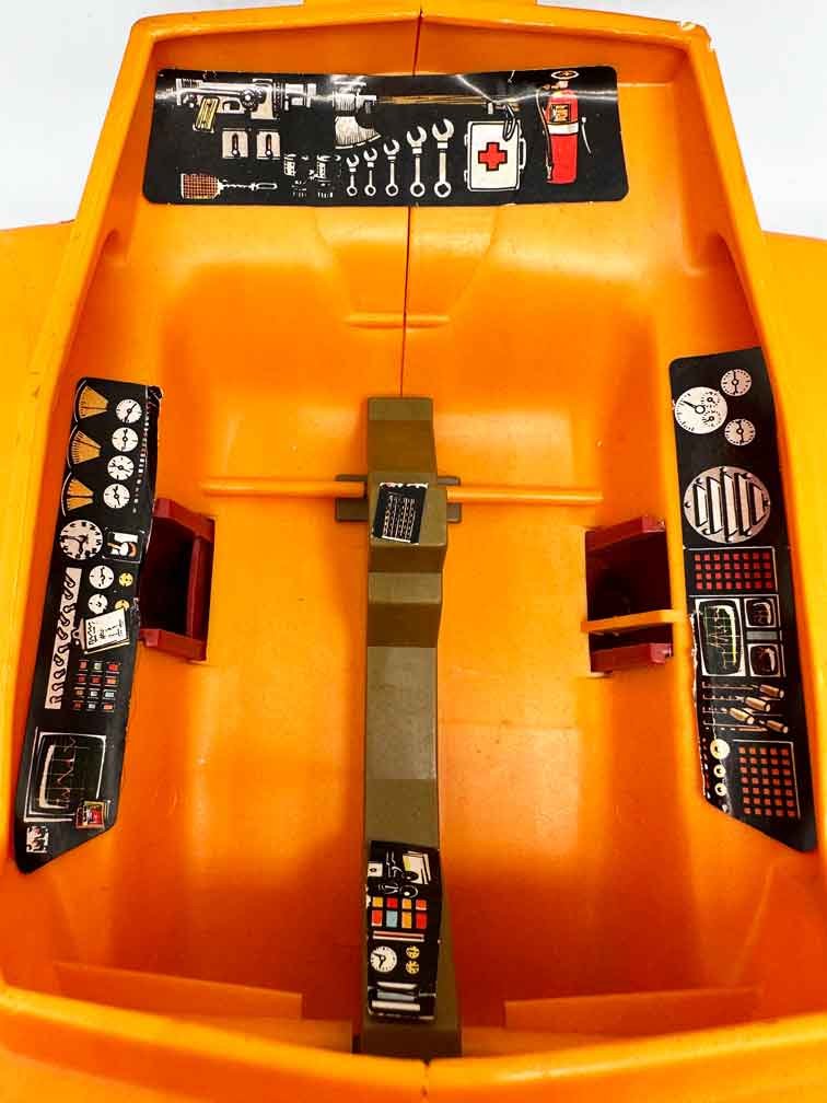 Plus the Origins version also includes grip handles for your figures to hold onto in the cockpit, which the vintage did not have. You can see how Mattel also recreated the interior stickers!