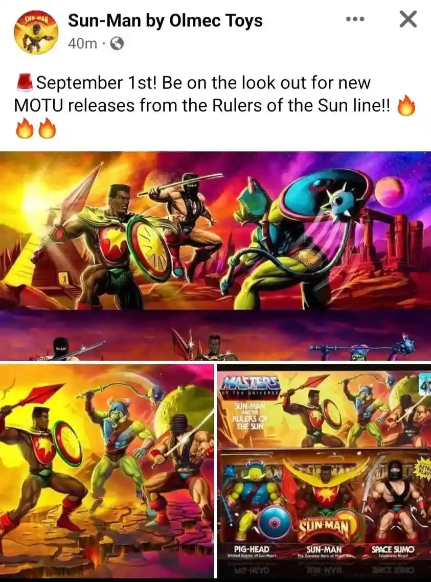 The Official Sun Man IG page might have leaked their own news as they have September 1, 2022 as the potential release date for the Target Exclusive Rulers of the Sun 3-Pack. They briefly posted the date on Instagram but then edited out the date! Special thanks to Charlie_5.5 for the tip off!