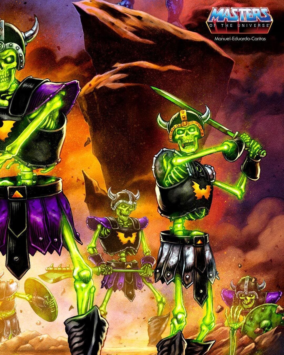 We at Toy Habits have a great knack at predicting what new characters may be coming to the MOTU Origins line and the Skeleton Warriors are no exception. As we covered in our Wun-Dar Card Art Teases New MOTU Origins Characters article, we predicted that these cool glowing army builders were going to come to the MOTU Origins line, and today we got confirmation of that! Just like Mekaneck and the Road Ripper, these little glowing army builders made their silent debut at the huge Eternia Playset display at 2022 SDCC! There was no big splashy panel announcing these guys, so they quietly sat in the corner looking oh so cool with no fan fair to greet them. But this weekend we got confirmation and MOTU Origins Skeleton Warriors are officially confirmed to be coming to the line in 2023! So let’s take a look at their official images.
