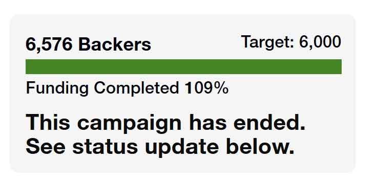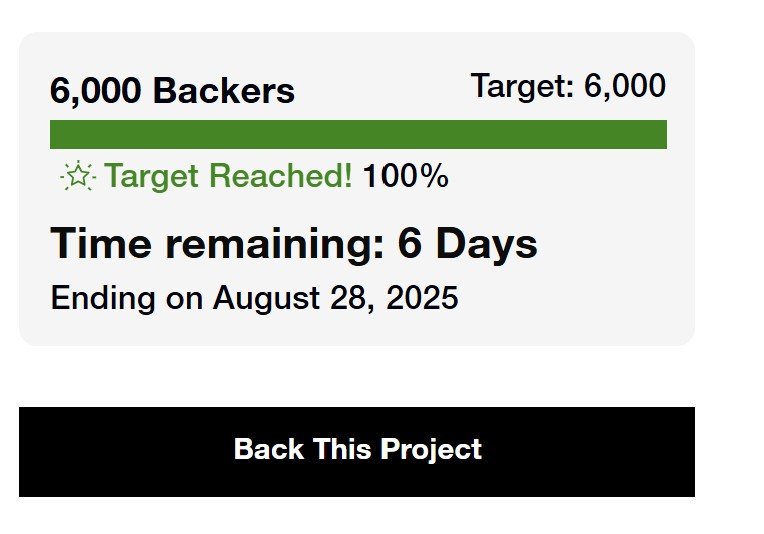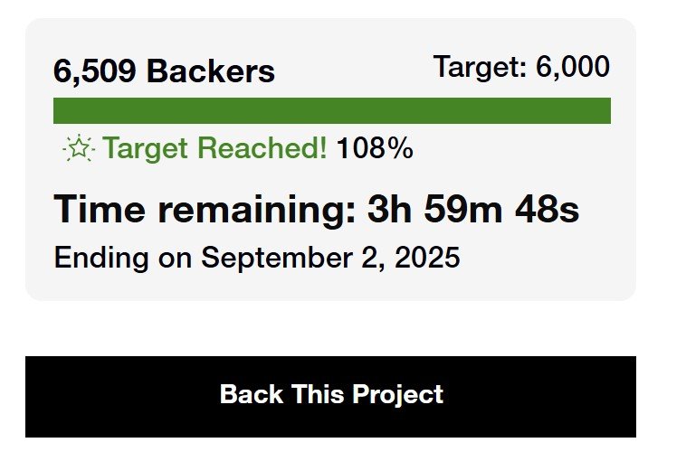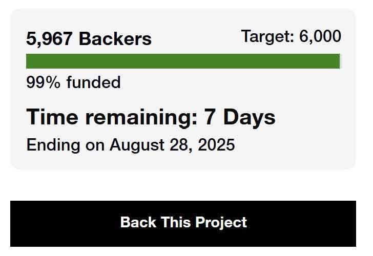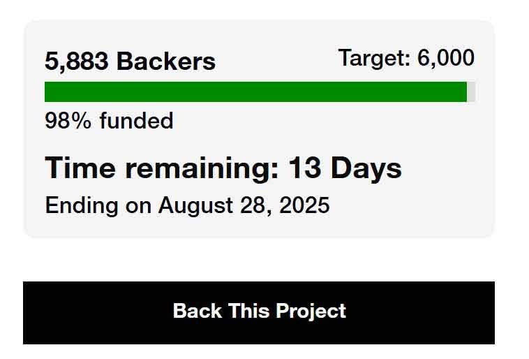 August 15, 2025 Update: 98% Funded, 117 backers to go!