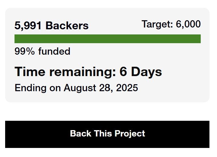 August 20, 2025 Update: 99% Funded, 33 backers to go!