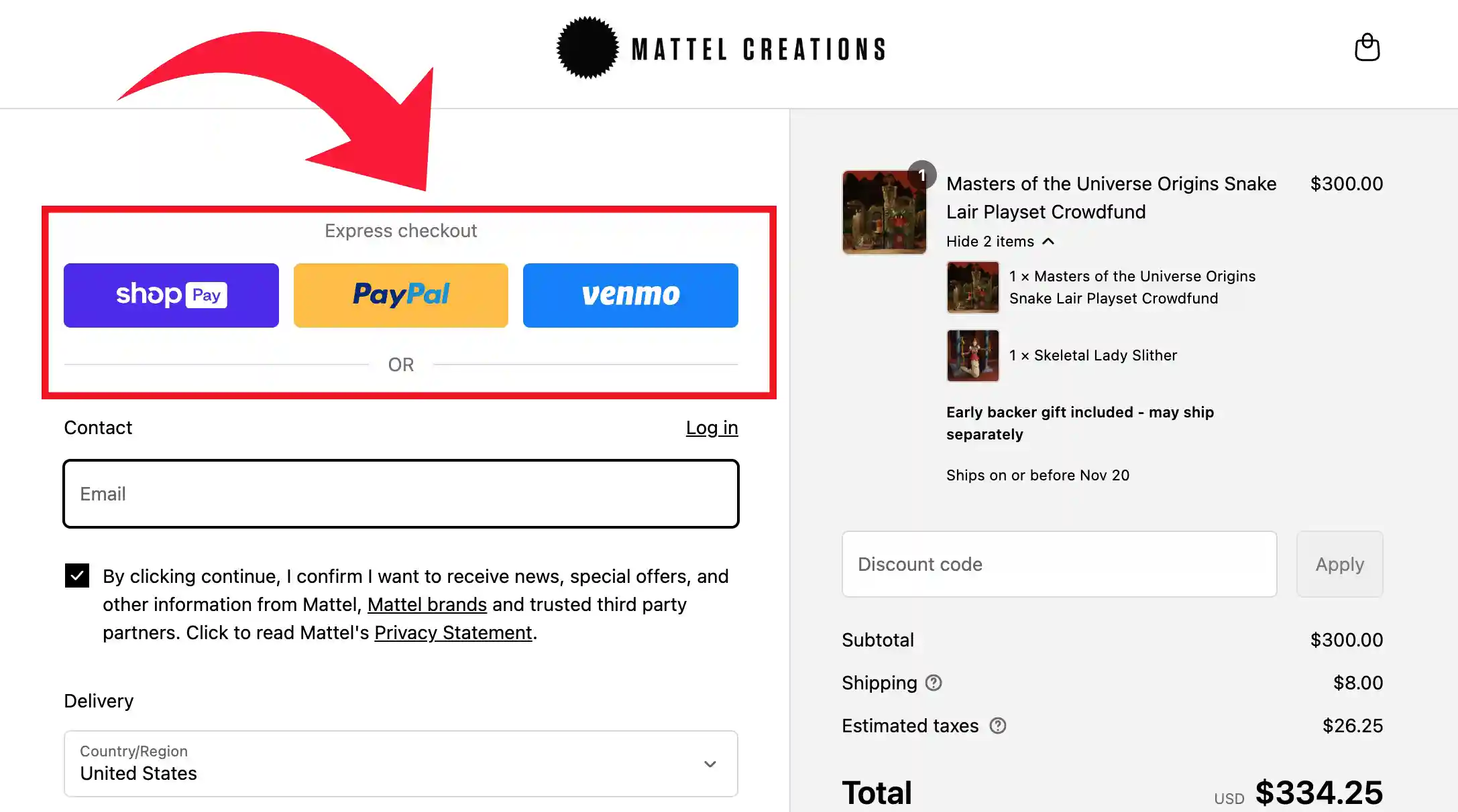 The Snake Lair Masters of the Universe Origins crowdfund just got a whole lot easier to back thanks to some new payment options! Mattel Creations has added Shop Pay, PayPal, and Venmo to the checkout process, giving collectors more flexibility when pledging for this epic playset. Whether you prefer the convenience of Shop Pay’s installment plans, the security of PayPal, or the speed of Venmo, you now have multiple ways to lock in your support. With these additional payment methods, fans who may have been holding off now have even more reasons to jump in and help bring this massive Snake Men fortress to life.
