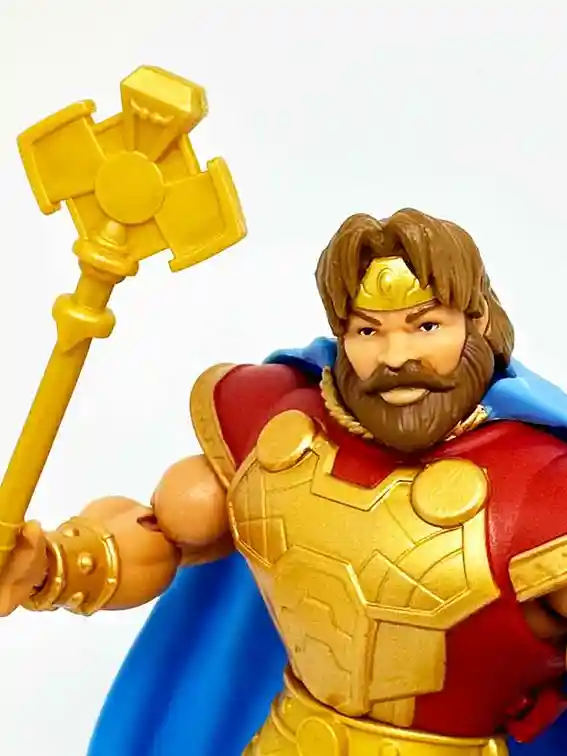 The details on King Randor’s face are incredible! I just love how the tufts of hair flow over his gold crown. Also his armor is a very beautiful shinny gold color with a lot of sculpted details, which make him look very regal!