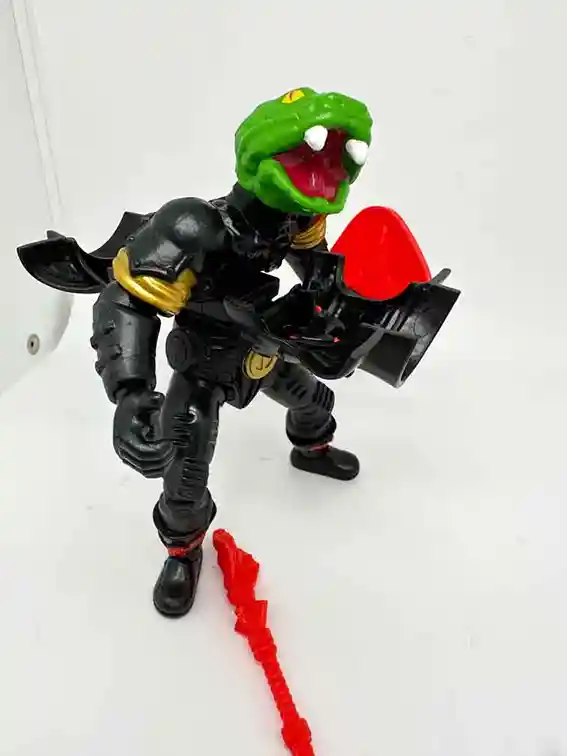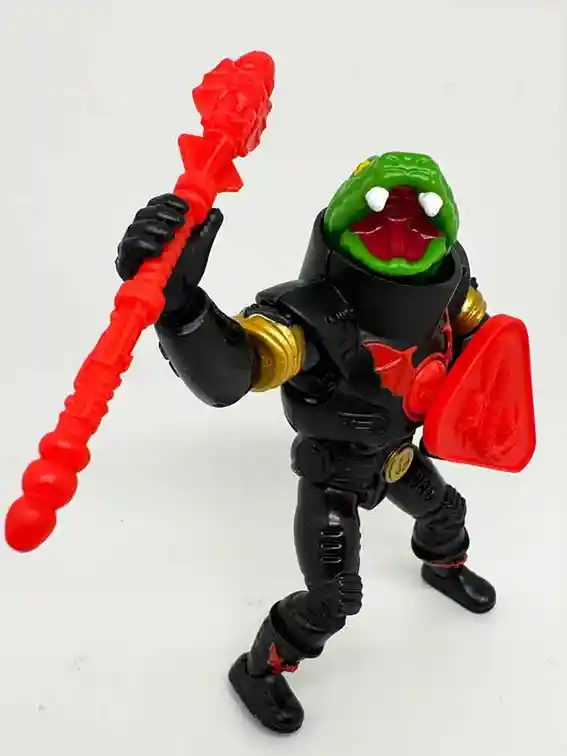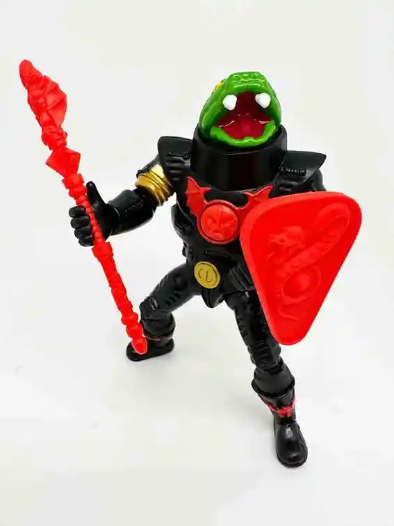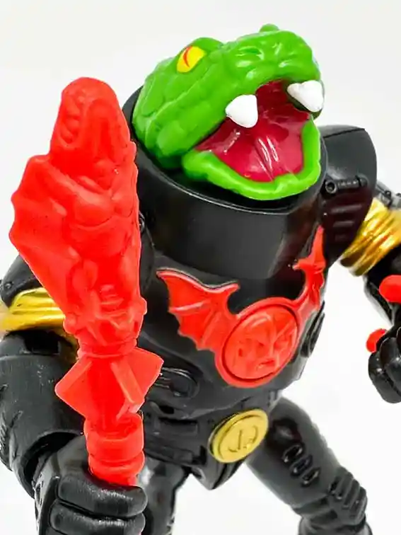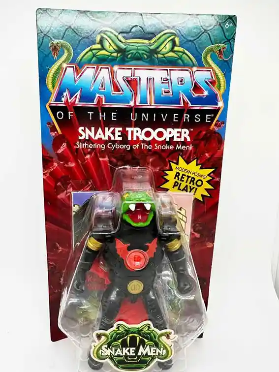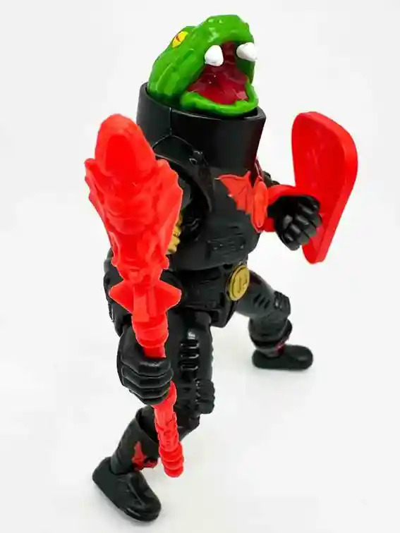 This Snake Trooper has the same action feature as the rest of the Horde Troopers! By pressing his Horde Logo button on his chest, he pops open as if a robot being blasted and falling apart!
