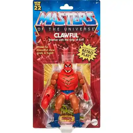 Clawful is a perfect Homage to the Vinatge Clawful Figure! Every detail in this new version harken back to the Clawful we all know and love! With his bright red lobster like face, big white eyes, bushy eyebrows and huge teeth, the look on Clawfu’s face is priceless! Complete with his giant working claw hand, bright red armor and bright green mace staff, you will love this langostino!