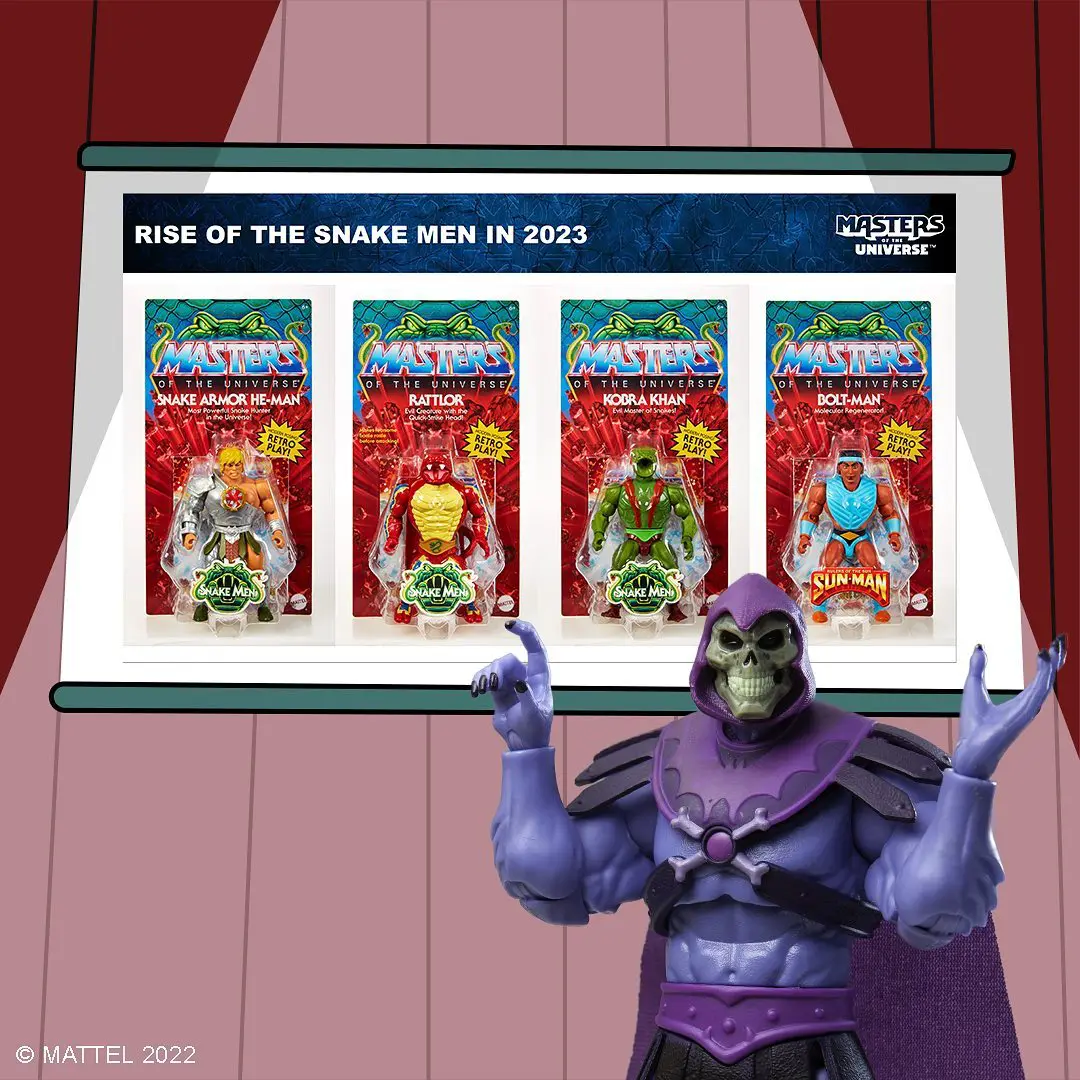 To the amazement of everyone we know, Mattel finally officially announced the Rise of the Snake Men coming to the MOTU Origins line in 2023, which include Snake Armor He-Man, Rattlor, Kobra Khan, and Bolt-Man from the Rulers of the Sun! They also revealed the first set of Masterverse figures to hit shelves in the Spring of 2023 and, this was not a surprise to us as we helped leak this news back in March 2022 via CANAL DOS ROSMINEIROS! We covered both of these SDCC 2022 reveals so check out both of our articles, “Rise of the Snake Men MOTU Origins Wave 1 + Camo Khan SDCC 2022 Reveal” and “Masterverse MOTU Core 2023 Figure Reveals from SDCC 2022” to find out more!