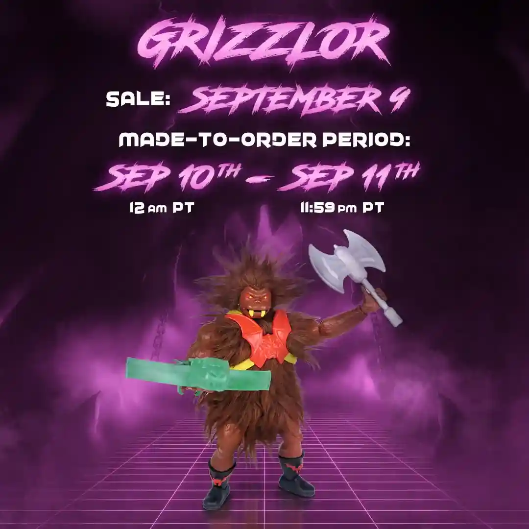 Coming in September: Grizzlor! A limited quantity of Grizzlor figures will go on sale day one, but if you miss out we’ve got you covered — a second made-to-order batch goes on sale the very next day. Sale: Sep 9th at 9am PT