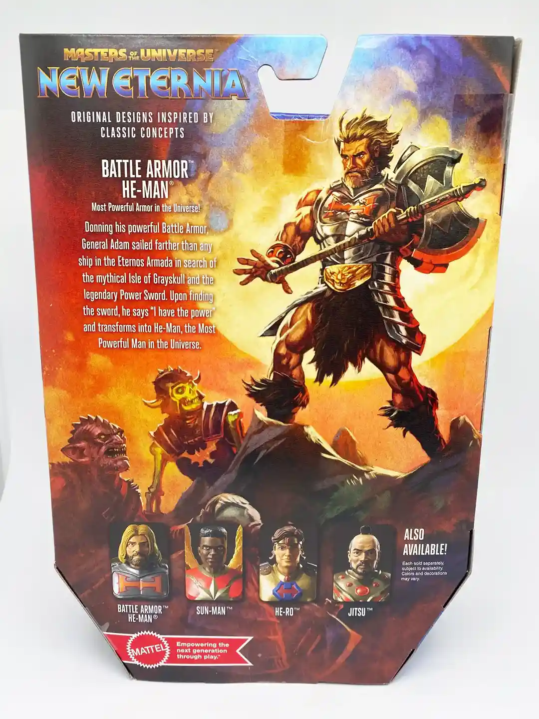 They really nailed the art on the side of the box, which features a wind blown Battle Armor He-Man with his shield stowed on his back and his axe in hand. The face really matches the figure in this illustration.