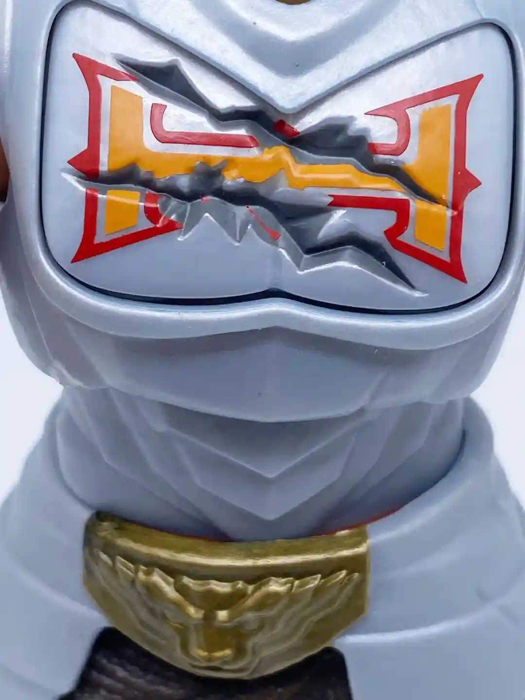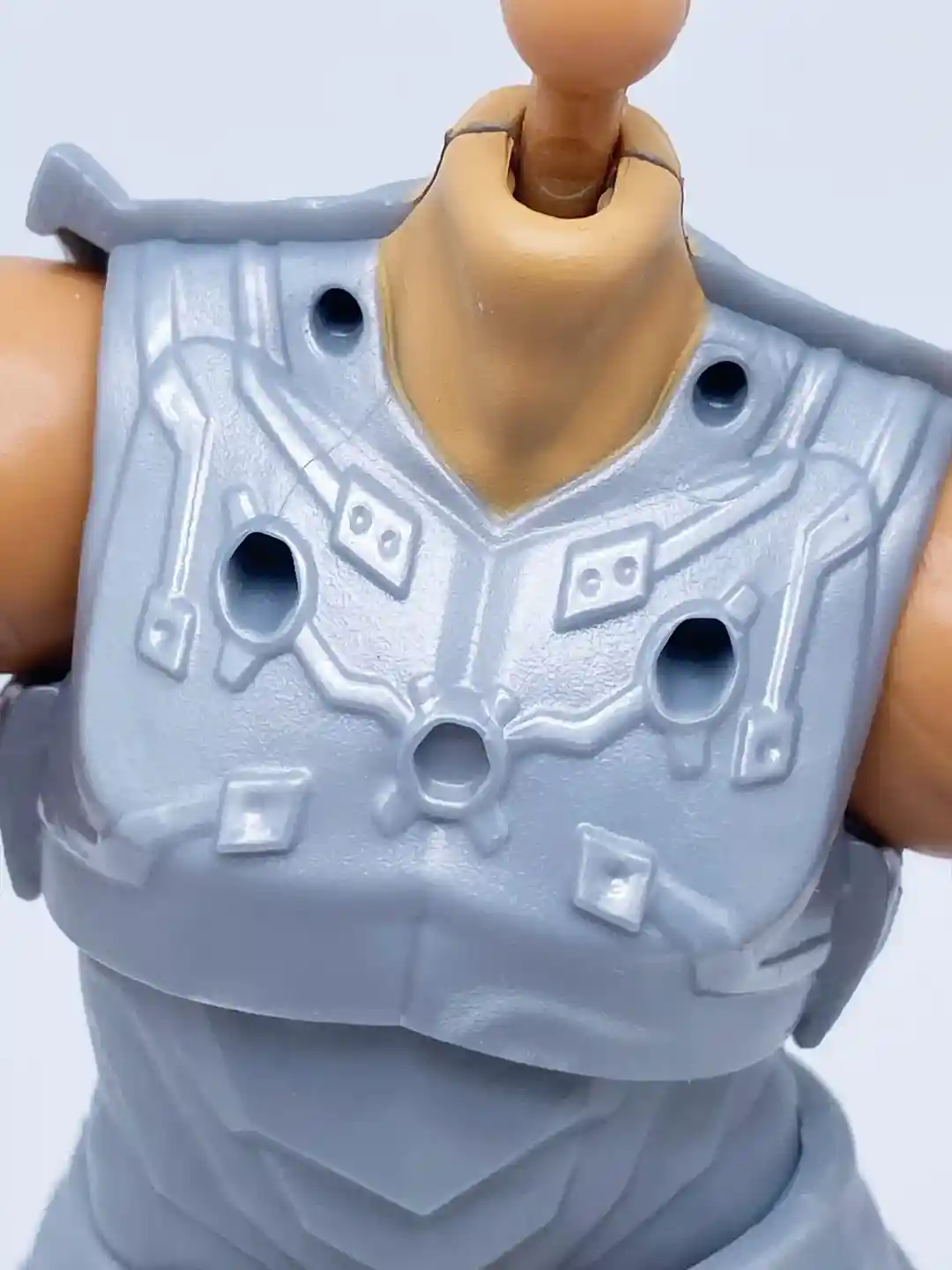 Swapping the chest plates to achieve his battle damaged look is very easy! They put some nice detail on the underside of his chest, which looks like a combination of metal and circuits. to swap this armor, you simply remove the larger front plate that is used to frame his armor, then you can easily pop off his clean armor plate and replace it with scarred plate.