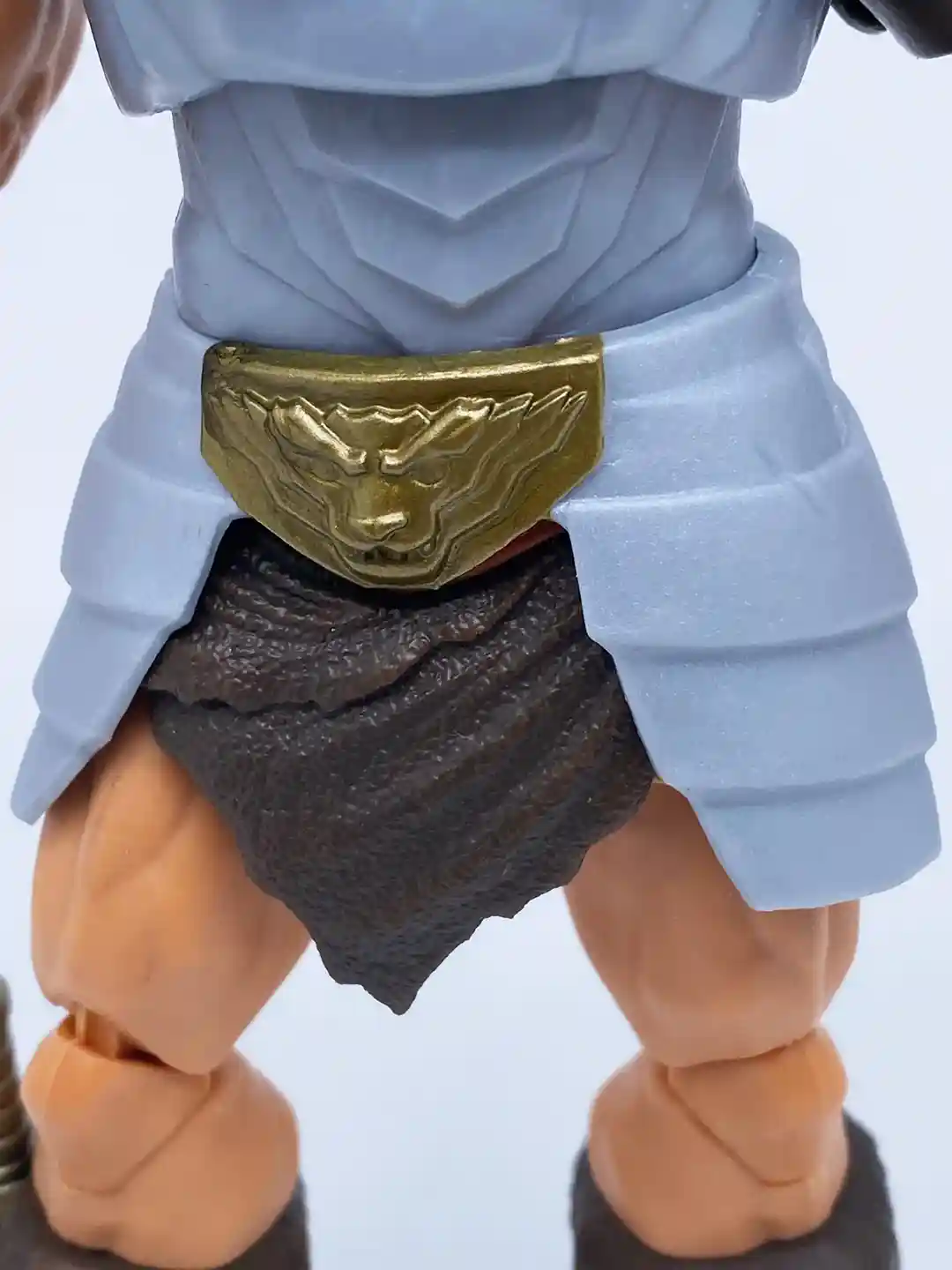 He also features a loin cloth that also includes removable waist armor. The lion design on this waist armor is like a belt buckle that makes the piece so much more interesting. Set off in a deep gold, the lion’s head design has a layered look, which gives it a ton of depth and dimension.