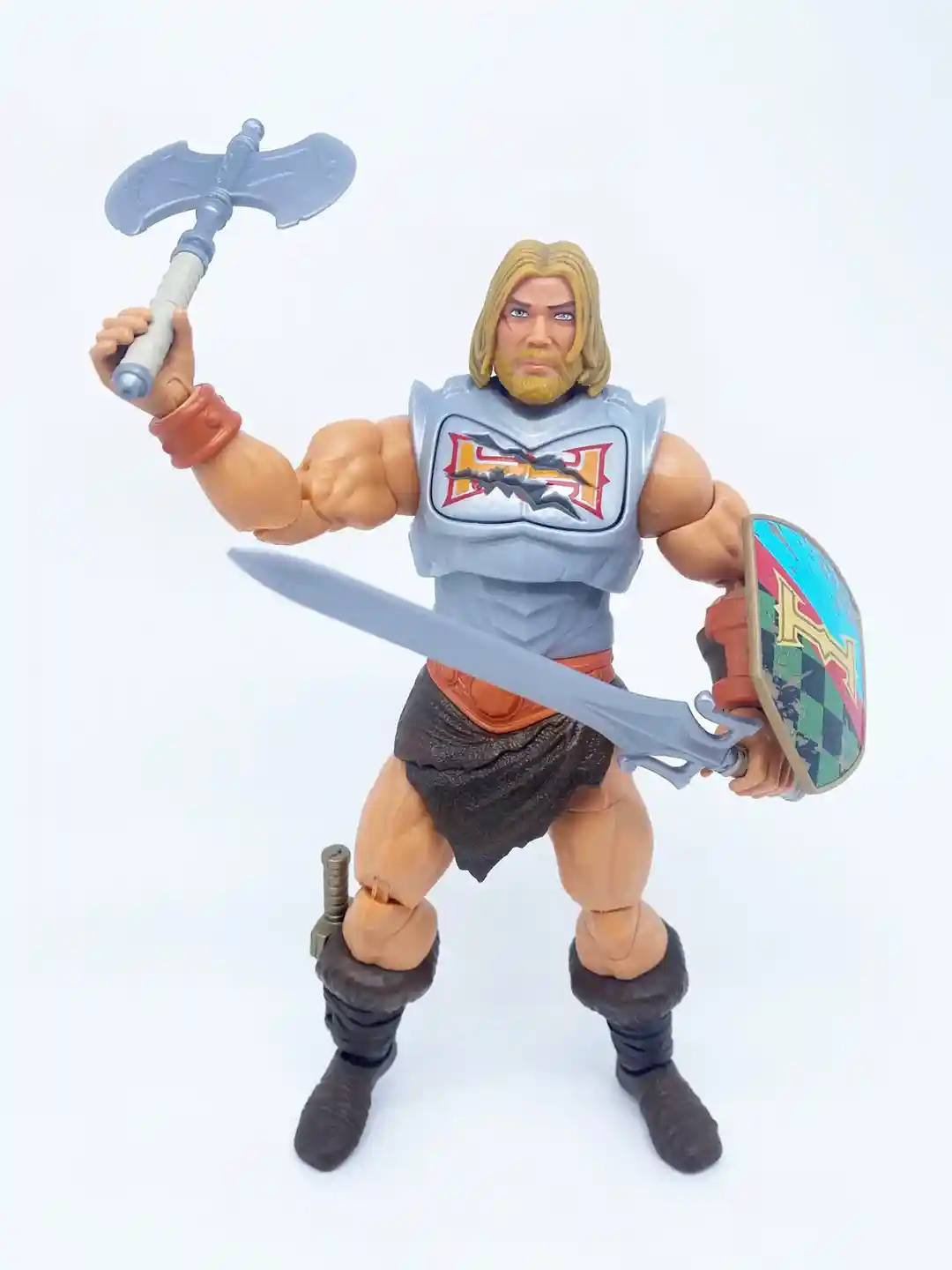 Since this entire figure is a reuse of the New Eternia Viking He-Man buck, he features the same sculpt but the boots are a different color scheme!