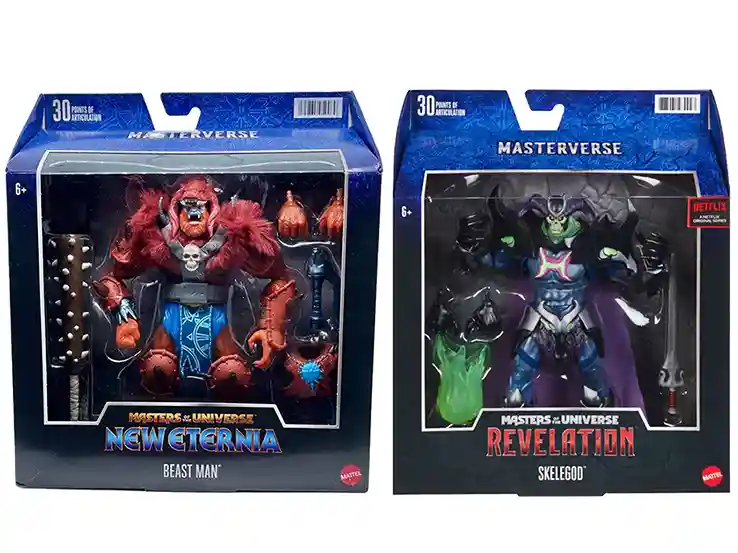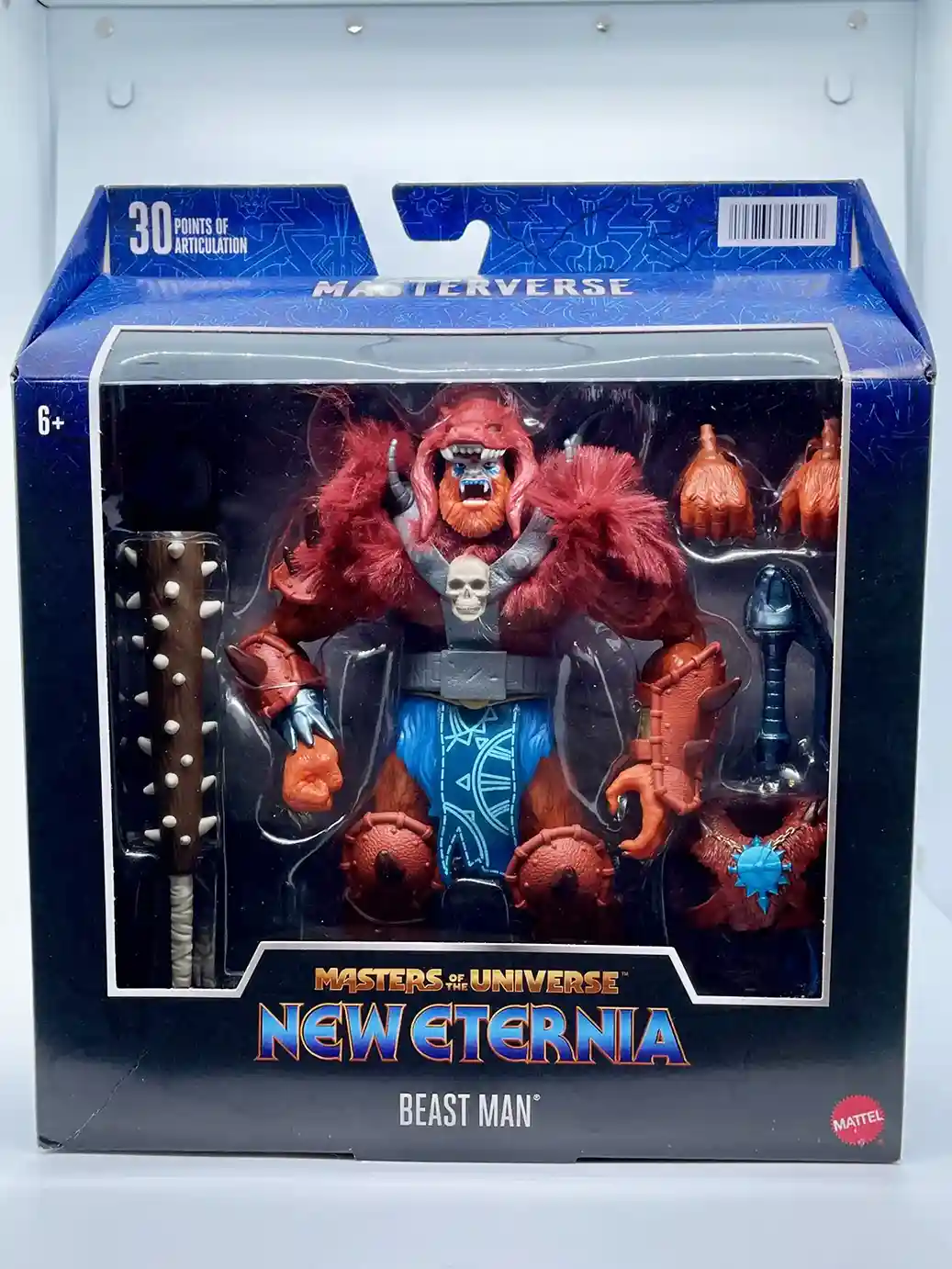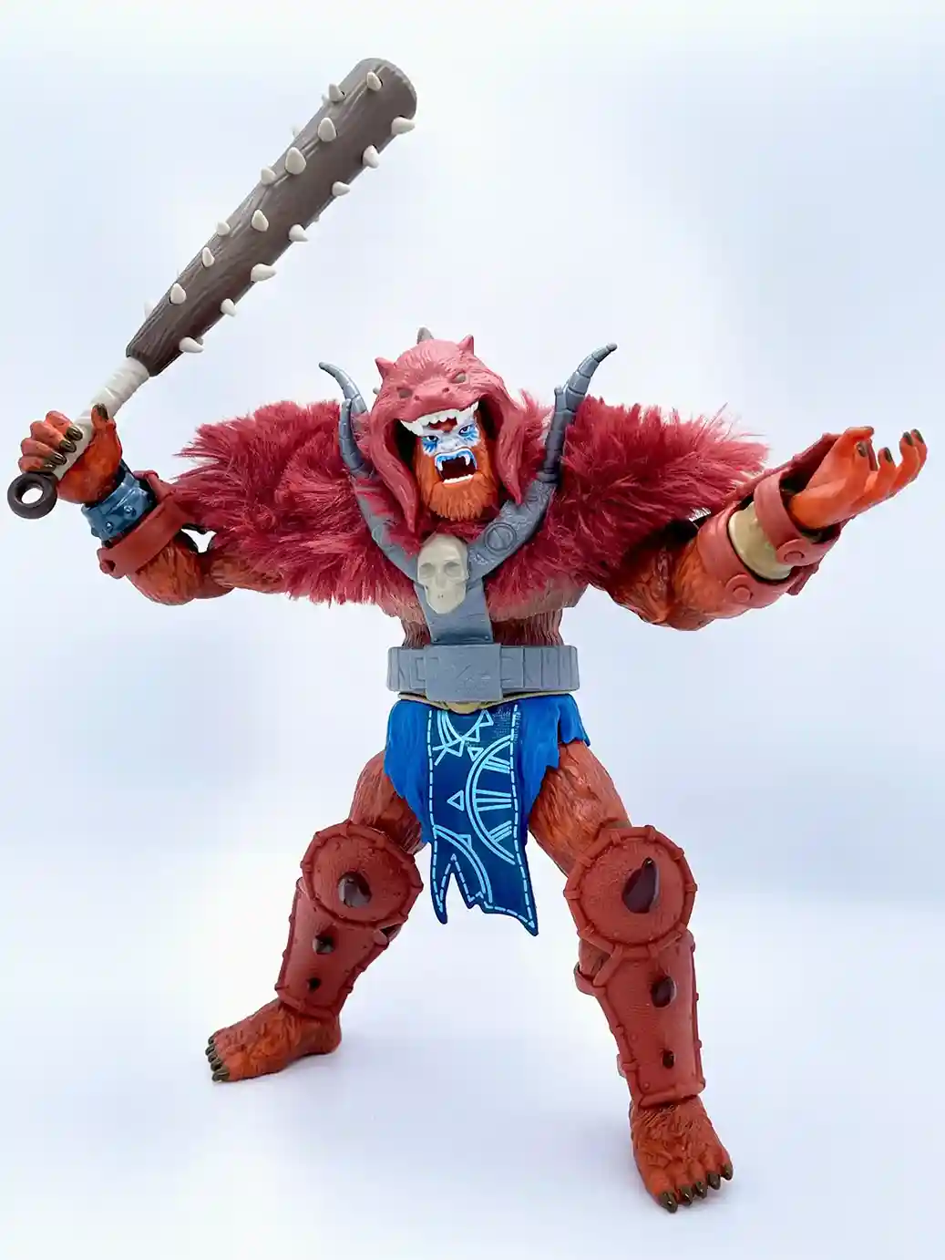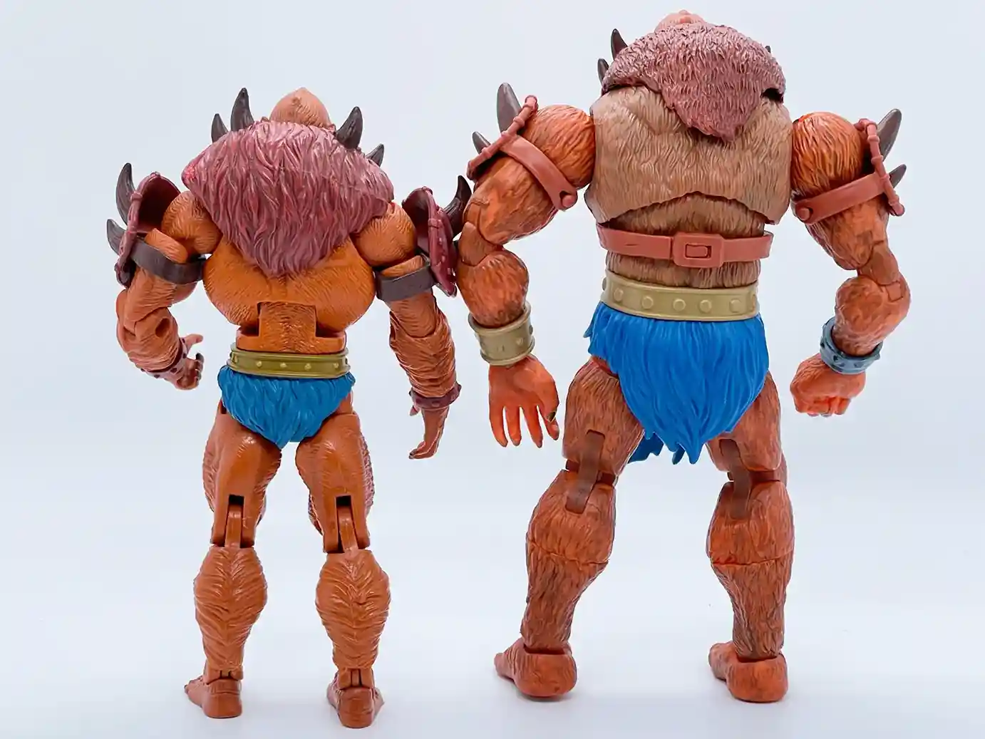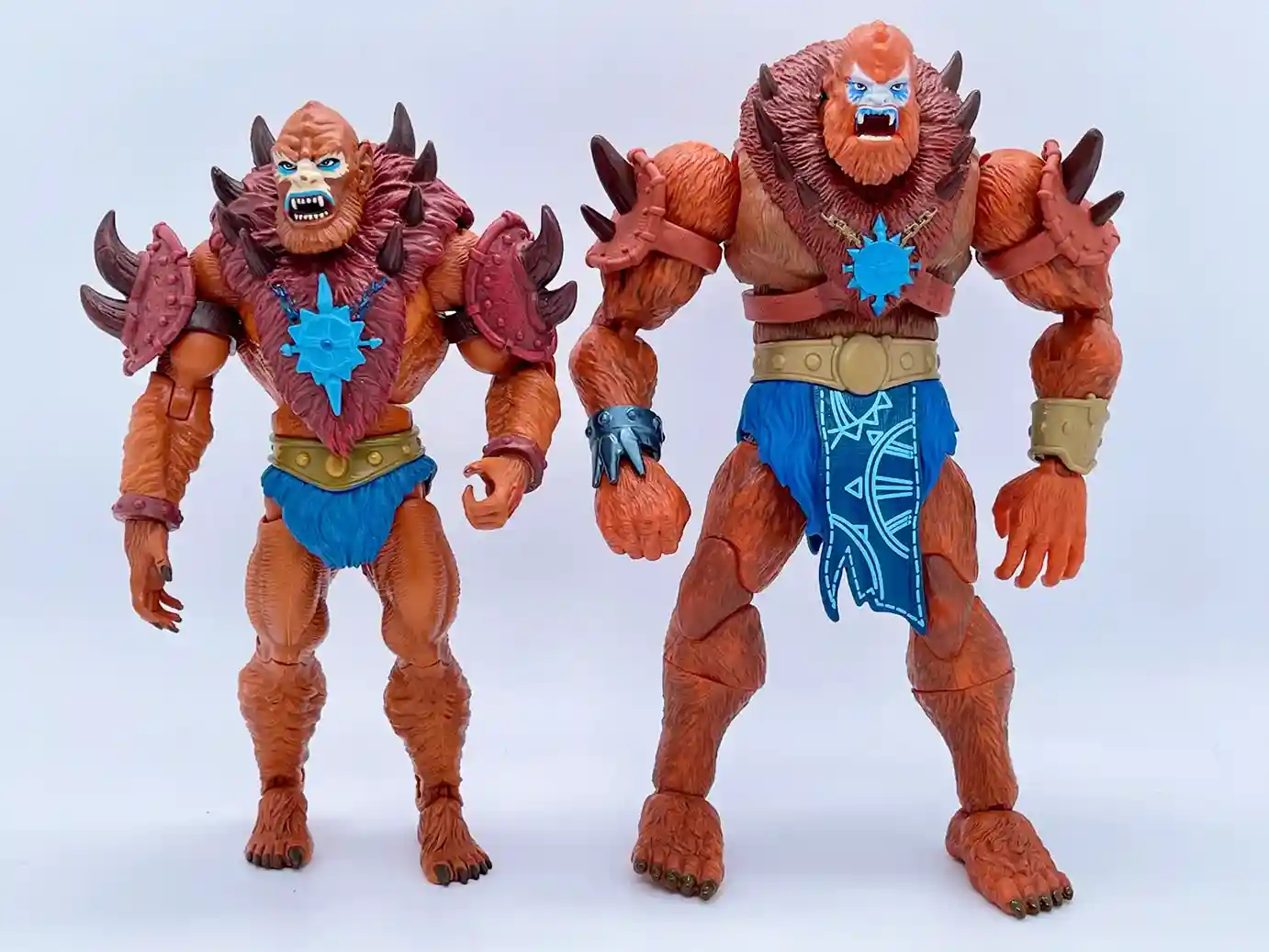 Many collectors were not happy with the Masters of the Universe Revelation Beast Man so when the New Eternia version revealed, this made everyone happy! With a completely new sculpt, the new version towers over the Revelation version in size and girth. The New Eternia figure and has less of a beast stature and is less hunched over. The skin tones are also quite different between the two figures but share that secondary loin cloth design.