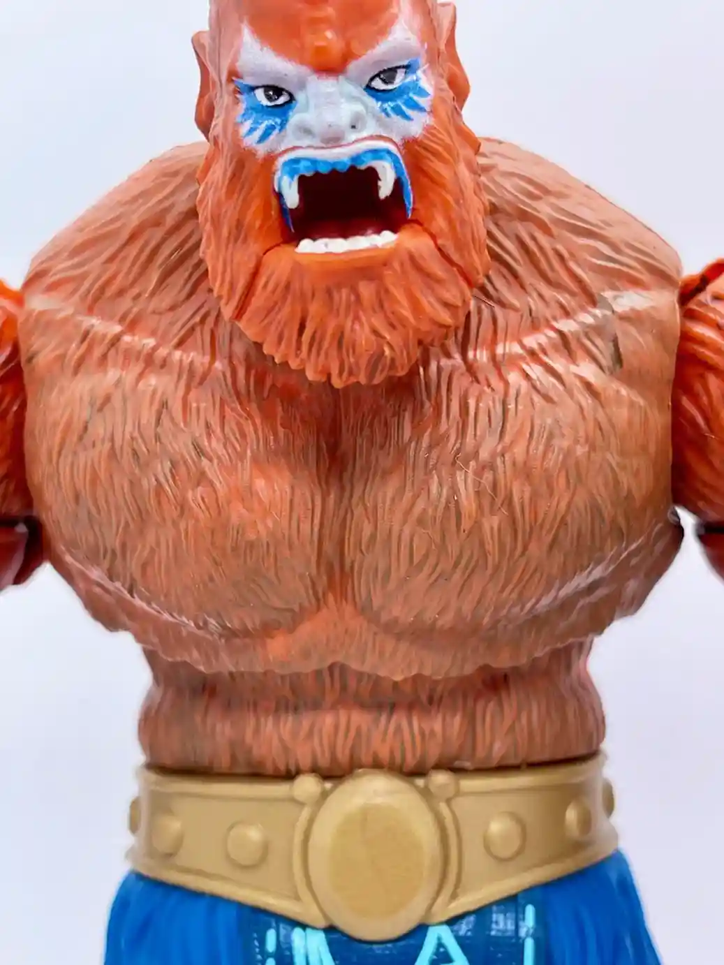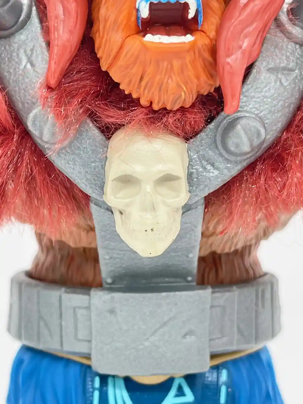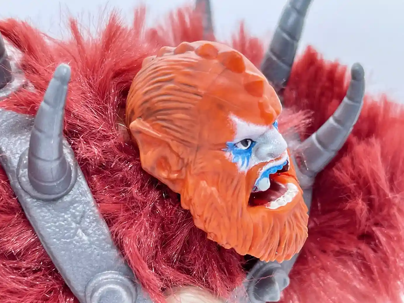 Since Beast Man is packed in a similar sized box as Skelegod, this makes Beast Man the second figure in the line to match the scale of the evil lord of destruction. With Skelegod’s large, oversized armor, the black tips make up the height difference although the heads rest about the same place in both figures.