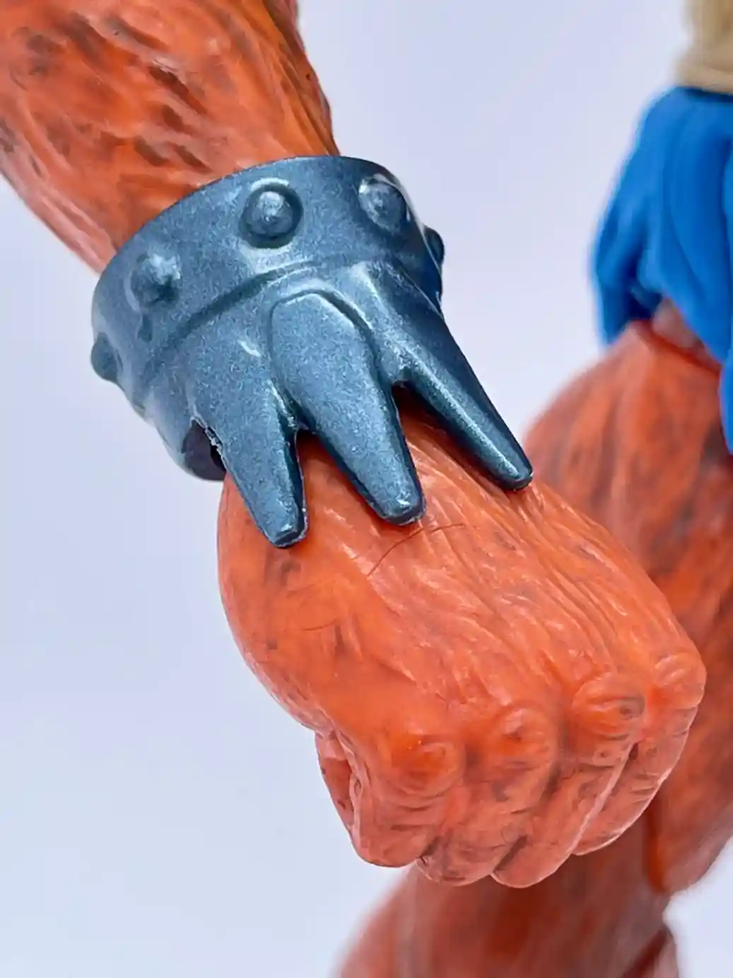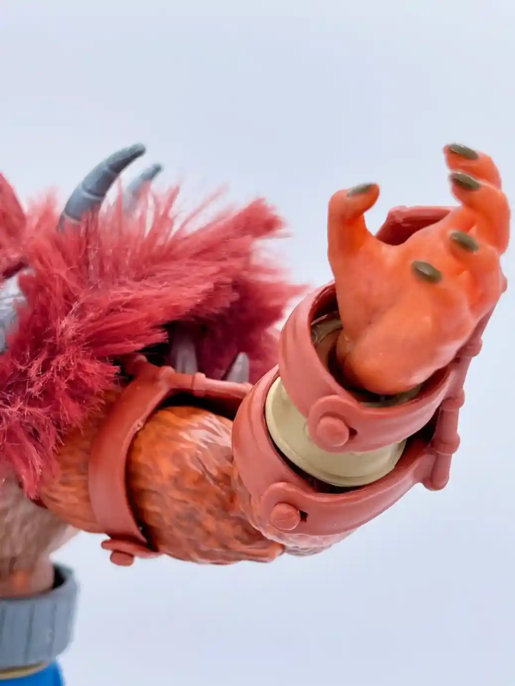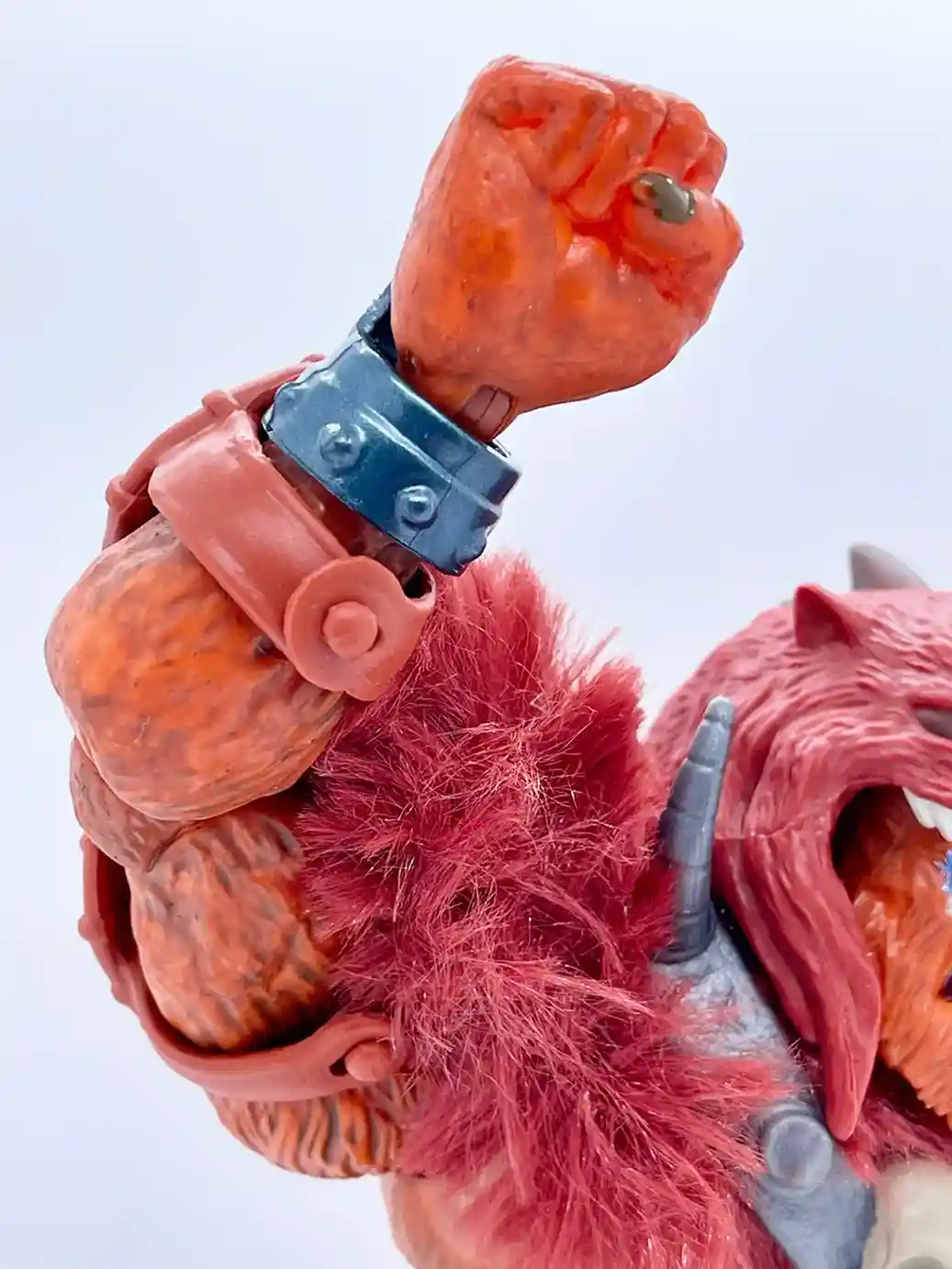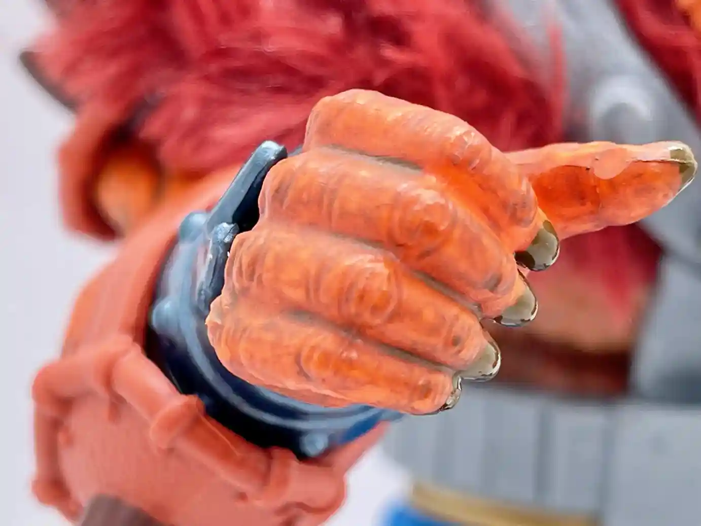 His arms are the true definition of asymmetrical as not only does Beast Man have different shoulder and forearm armor, he has completely different bracers!