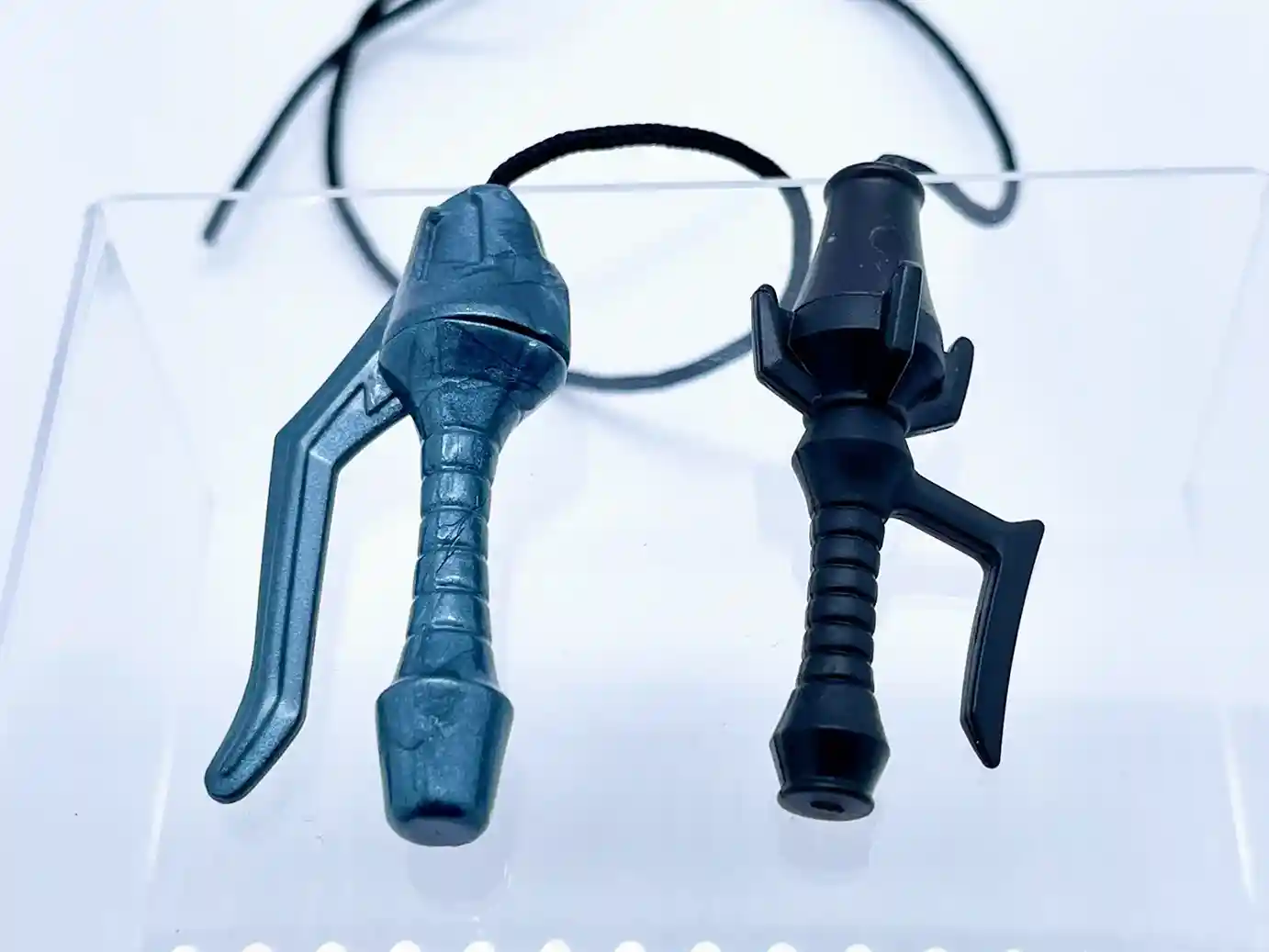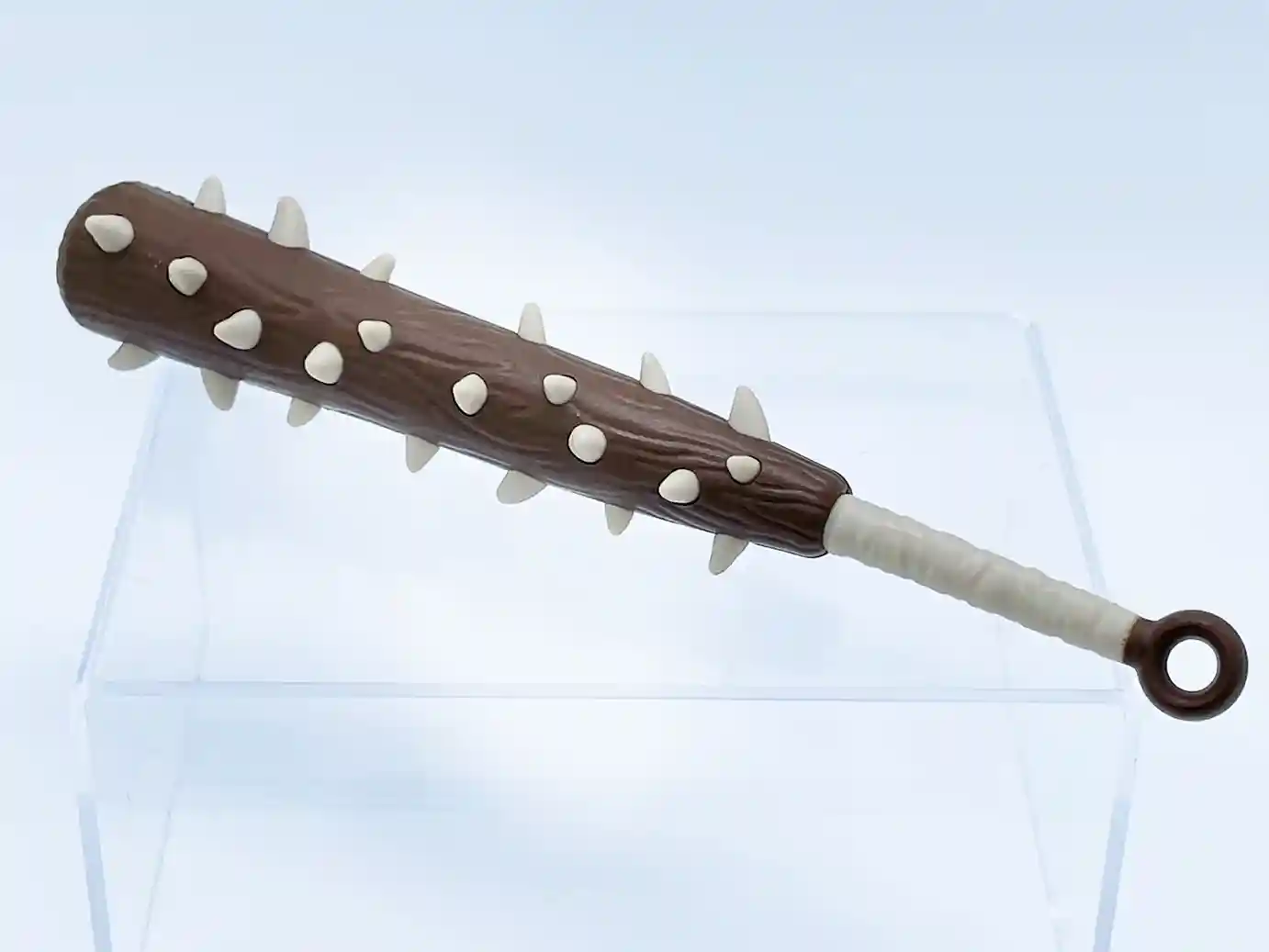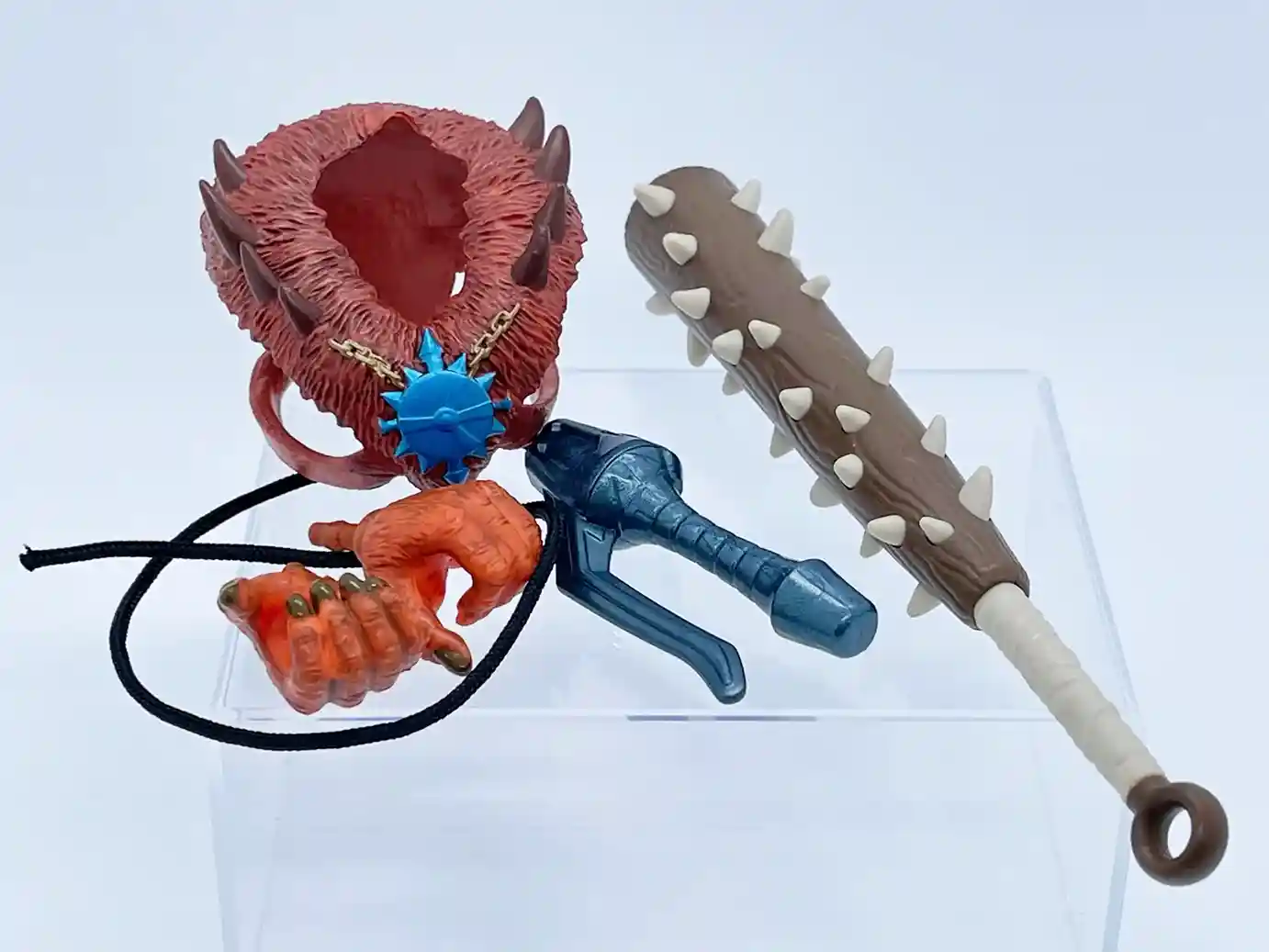The spiked club is over the top cool! It looks like a baseball bat on steroids with white spikes coming out it. It also has a nice woodgrain look and a white wrap around the handle. At the end, it has a circular eye that resembles the tow hook attachment on Trap Jaw’s head.