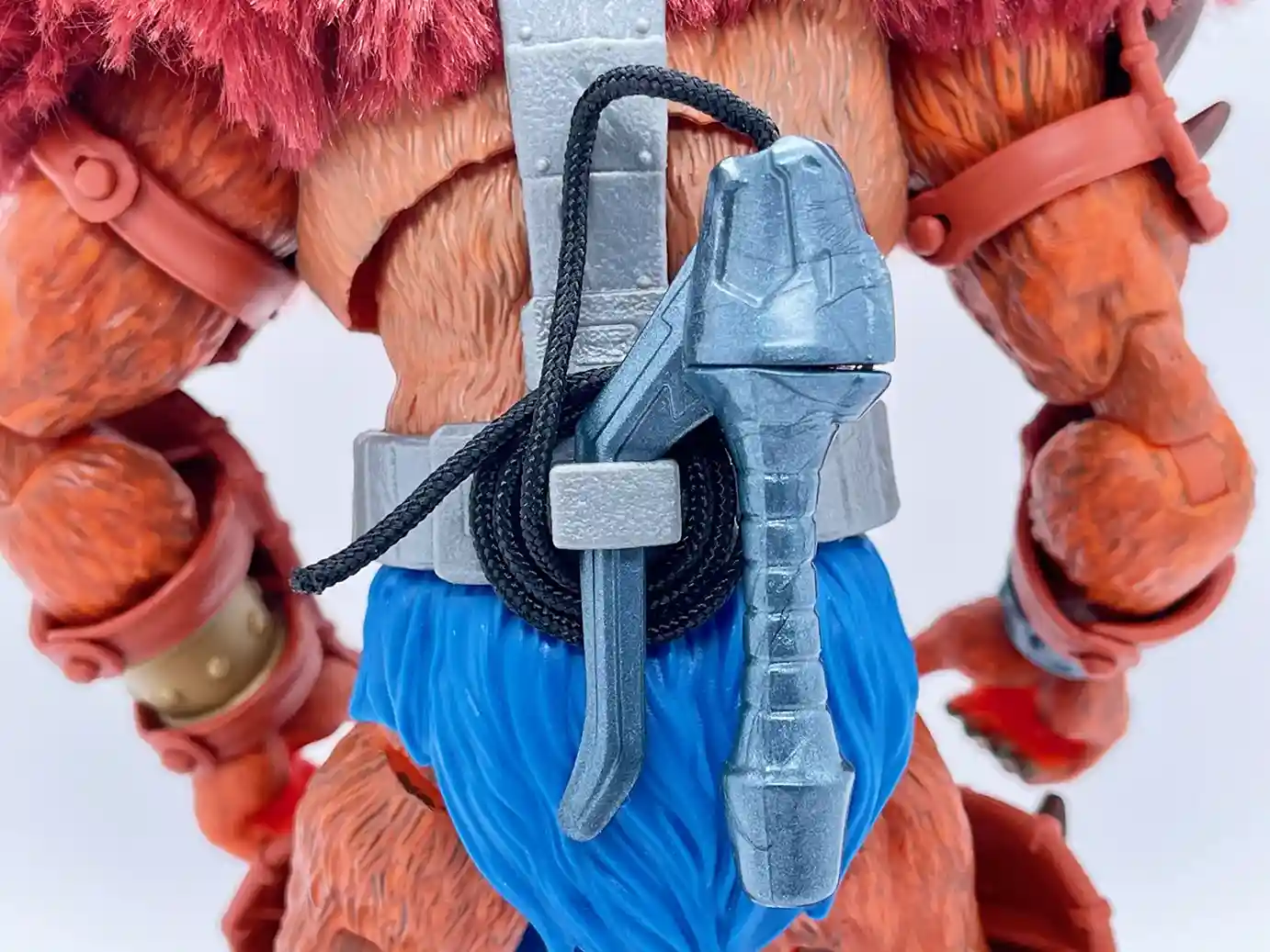 The whip is surprisingly not a repaint of the Masters of the Universe Revelation whip but a brand new weapon sculpt! It is cast in a metallic blue paint which ties into the wrist cuff on his right hand. The cool thing about the whip is that you can stow it in the back of Beast Man’s armor!