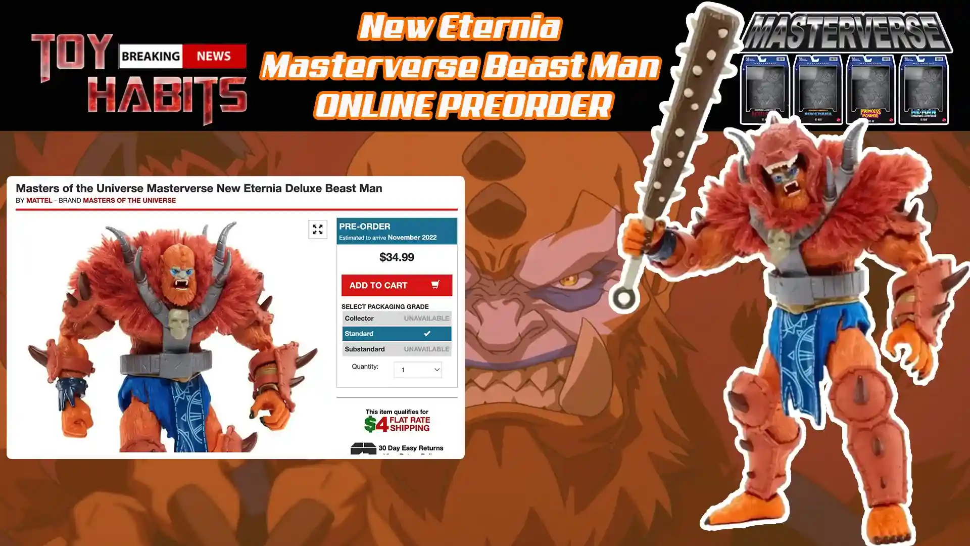 July 16, 2022: New Eternia Beast Man went up for preorder on Big Bad Toy Store!
