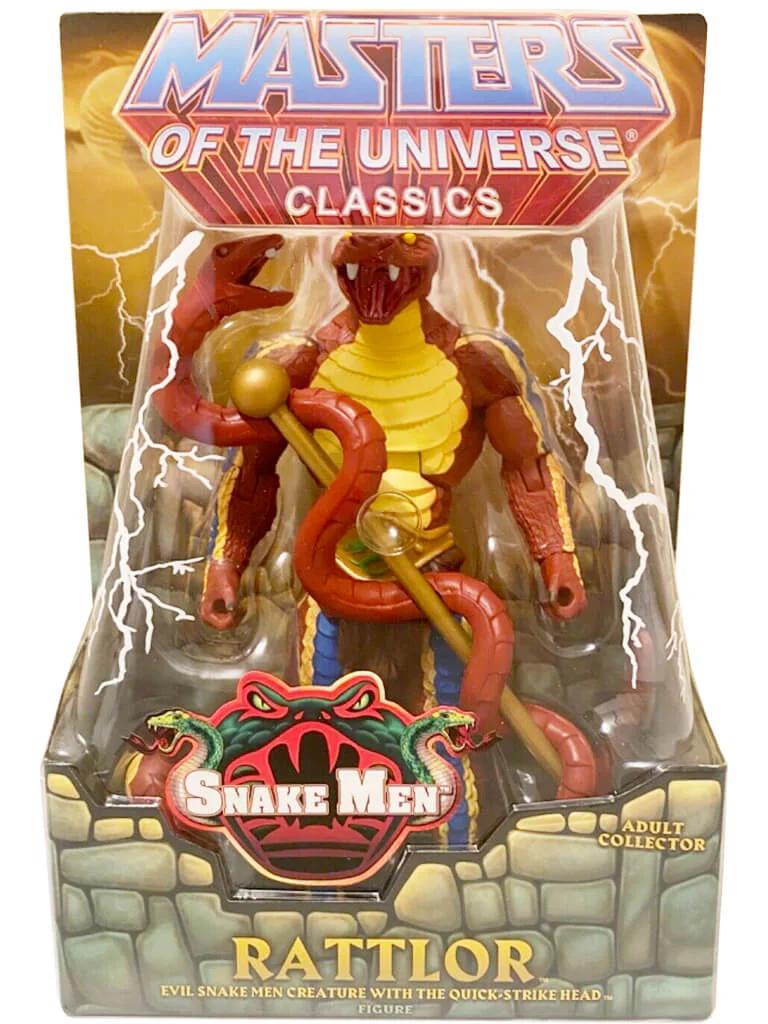 Release in 2012, the MOTU Classics line also released a Rattlor figure which is more to scale with the Masterverse line.