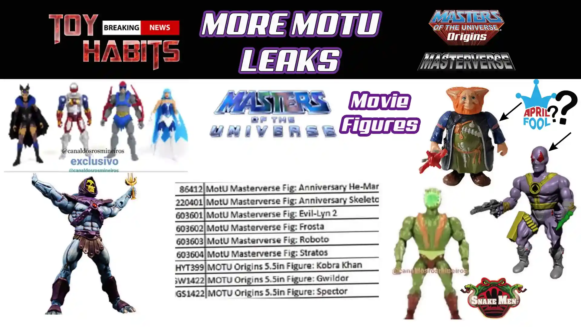 A newly leaked list of Masters of the Universe Origins and Masterverse figures has surfaces and it appears part of the list is an April Fools joke but most of the list references leaks we have already gotten from our Toy Habits source and our trusted friends at CANAL DOS ROSMINEIROS!