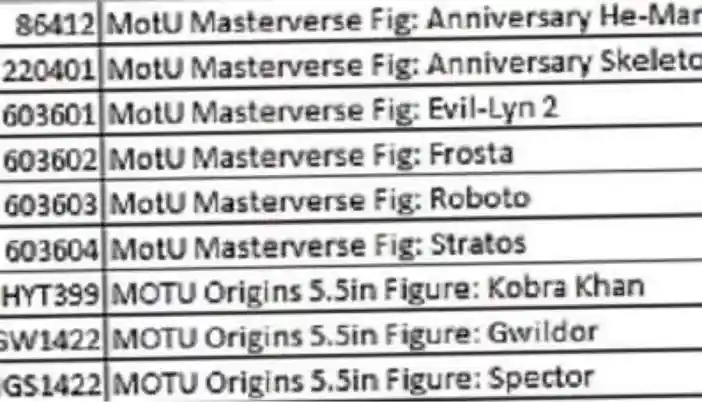 Similar looking to an image of a previously leaked list, a new image has surfaced of a list of upcoming Mastervese and MOTU Origins figures. The interesting part of this list is that the names on the list confirm what our friends at CANAL DOS ROSMINEIROS shared with us of upcoming Masterverse and Origins figures several weeks ago. Also, at appears to be an April Fools prank as Gwildor and Spector’s product ID’s are 1422 (April 1, 2022). With regards to other leaked figures on the list, we’ve covered these stories in the following previous articles where we revealed and helped break the news of the Sorceress Evil-Lyn, Roboto, Stratos, and Frosta coming to the Masterverse line AND the impending arrival of Kobra Khan and the rest of the Snake Men.