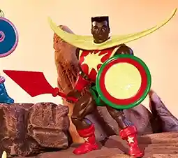 A few days ago, we speculated, as many others did, that the leaked news about a potential Rulers of the Sun 3-Pack would include Digitino, Space Sumo, and Pig Head. With the reveal of Pig Head as a single carded figure, we have another theory! With the reveal of Space Sumo and Digitino during the mid March reveals, they are still likely candidates to be included in this rumored 3-Pack. During a previous reveal of the Rulers of the Sun Line, we also saw that Mattel is creating Sun-Man version 2 with his vintage flattop haircut and seemingly older look. If Sun-Man version 2 was included in this 3 pack, that would make this a heroes pack that would be amazing!