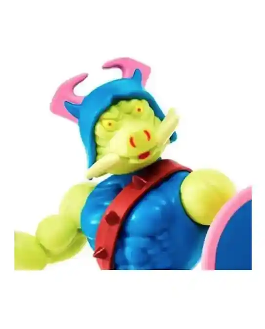 In addition to the carded reveal, we got more detailed images of the actual figure of the Wicked Enemy of Sun Man. The figure is more or less a direct translation of the vintage figure (see below) but with much brighter colors. The pinks, greens, and blues definitely pop more on this figure and more more loud, which goes along with the other MOTU Origins figures.