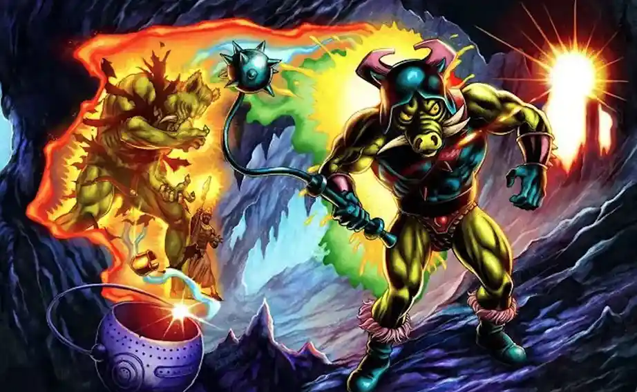 Back at Castle Grayskull, Sun-Man explains that Pig Head was banished and now he wants to harvest Eternia’s sun. Sun-Man tracked down Skeletor’s spy and pulls out Mantenna from a bag! They force Mantenna to tell them where Skeletor and Pig Head are hiding!