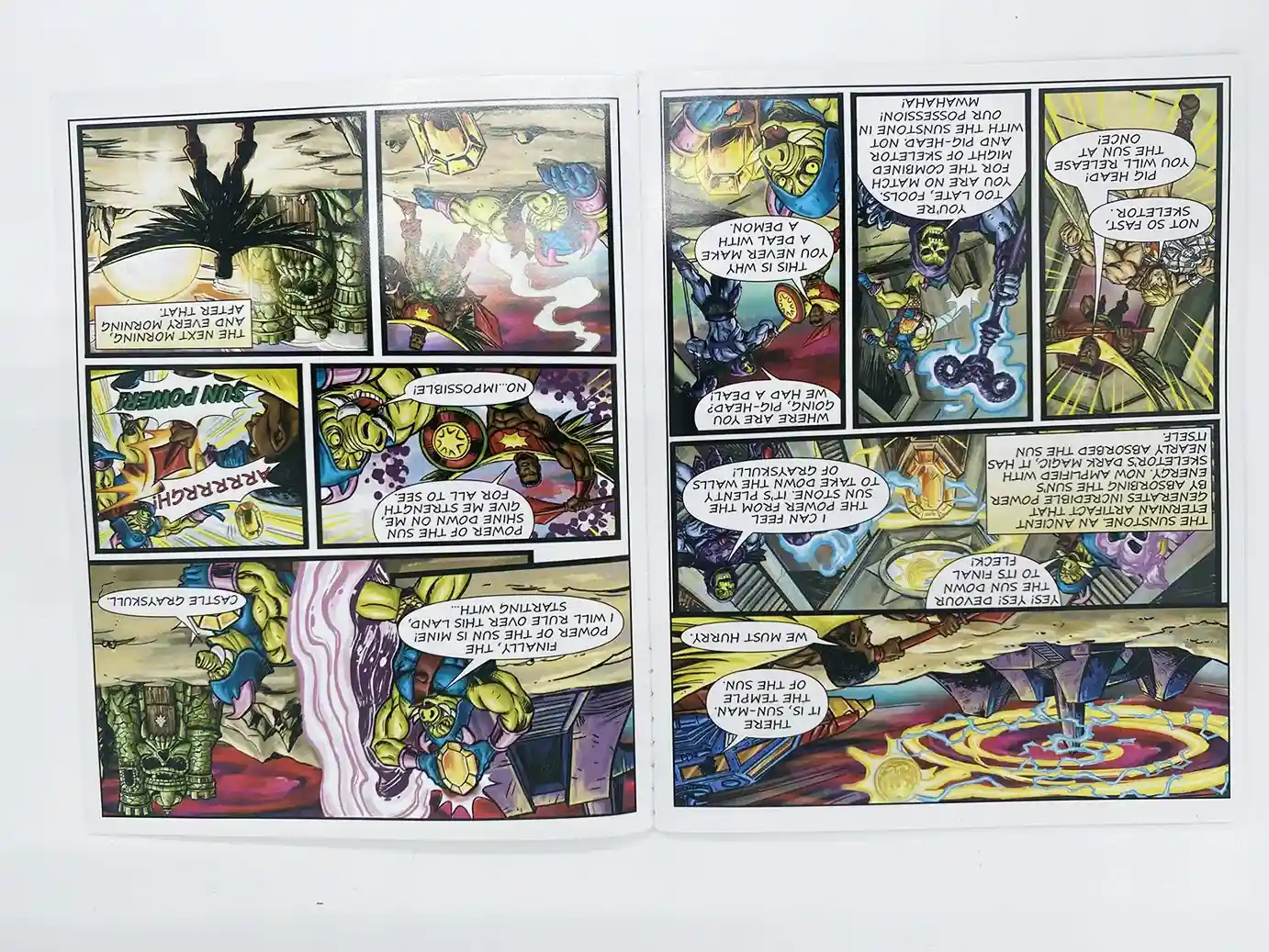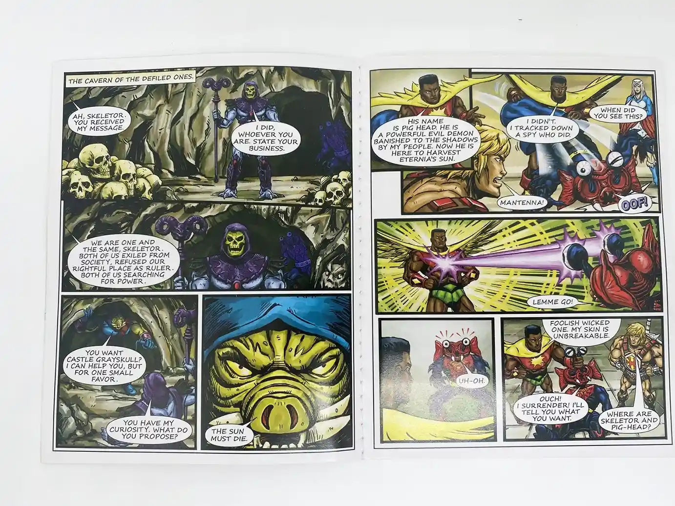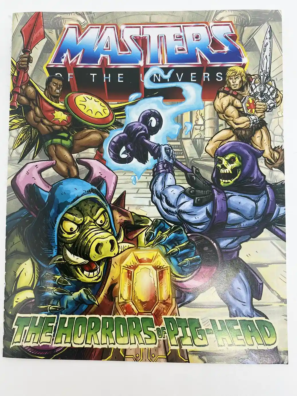 The mini-comic that comes packed with all the Wave 9 figures is “The Horrors of Pig Head”. The cover features Pig Head trying to obtain the Sun Stone and 200X Skeletor by his side, with Sun-Man and 200X He-Man ready for battle. We will cover a summary of the mini-comic below, so if you don’t want to know what happens and what to read it for yourself, skip this section and keep going.
