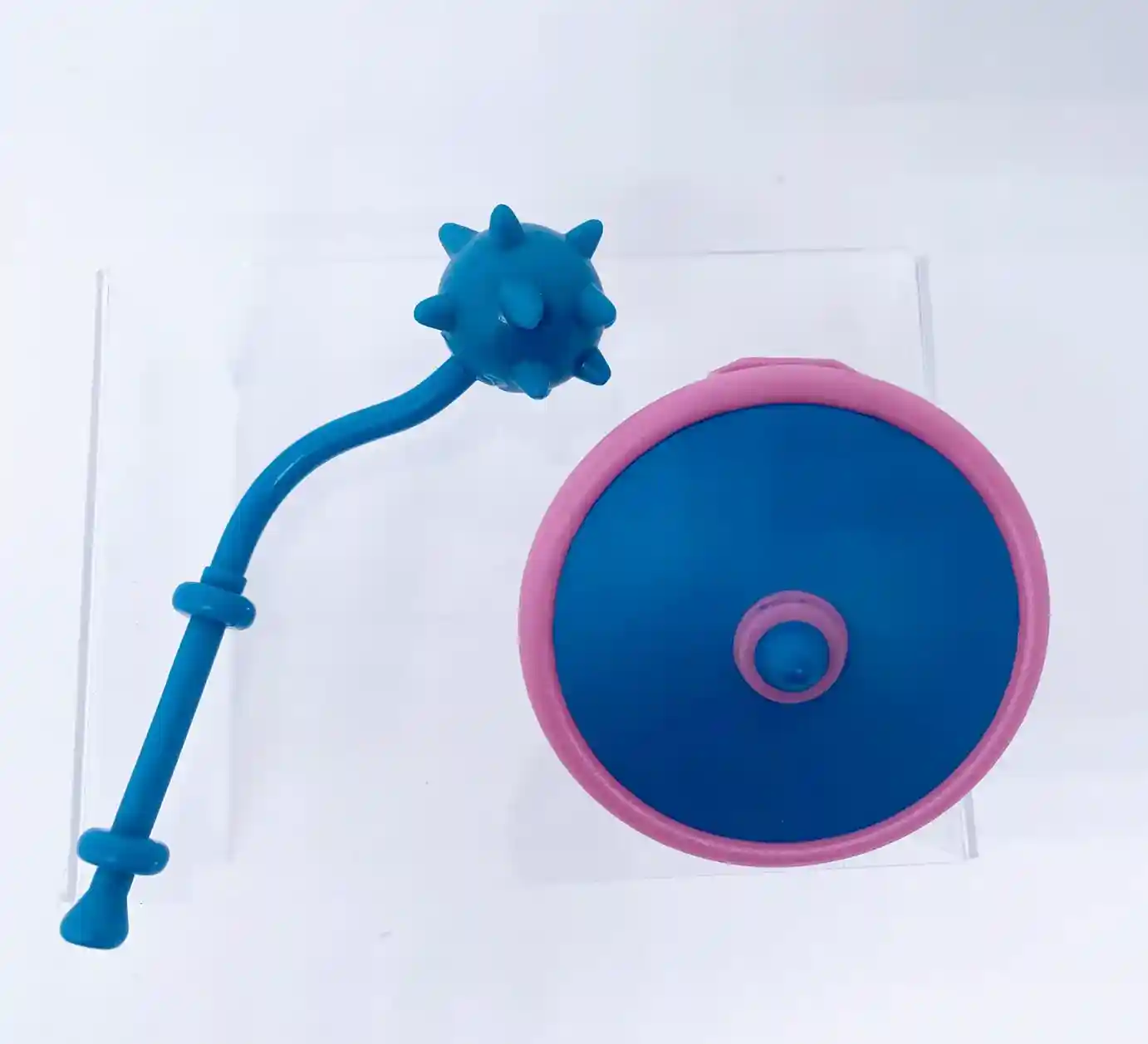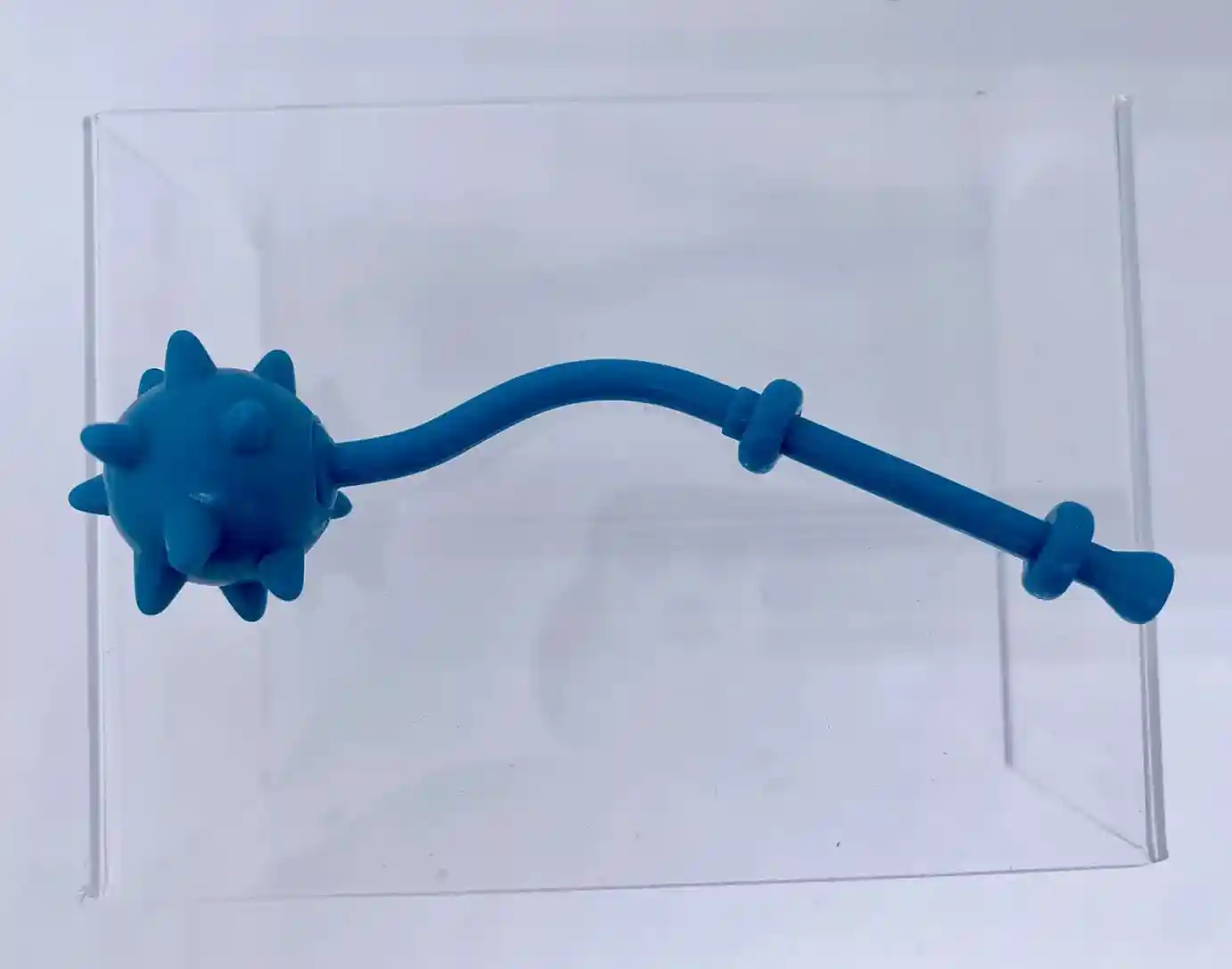 Pig Head’s Spiked mace is a really fun design with it’s curved post. When Pig Head holds his spiked mace in his hand, it’s fun to pose him ready to attack as the curved design makes him look both silly and fierce at the same time! This weapon too is modeled after the vintage version.