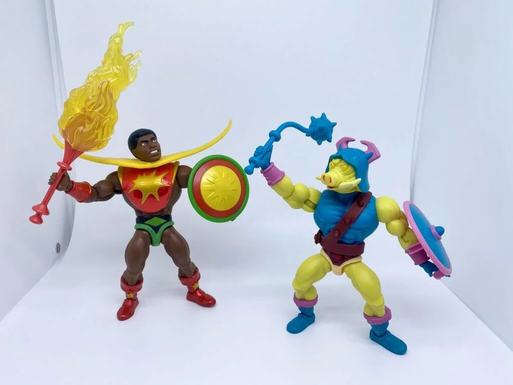 Pig-Head wicked enemy of Sun Man joins the Masters of the Universe Origins line as part of Wave 9! Olmec Toys launched their flagship character Sun-Man in 1985 with the idea that that no matter what your skin-color, you can still be a superhero. With that, the Rulers of the Sun line was born by its founder Yla Eason. Mattel has now partnered with Olmec toys to bring us the entire line of Rulers of the Sun the Master of the Universe Origins line! Below you can see Sun-Man and the rest of the Rulers of the Sun Pig Head, Digitino, Space Sumo and a second versions of Sun-Man with a more stylized head sculpt. To my surprise, Pig Head has really become my fav or the wave! We will dive in detail with this hands on review!